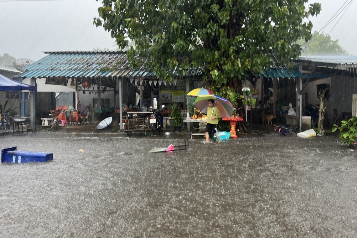 ฝนถล่มเมืองตราด แค่ 30 นาที น้ำท่วมถนนหน้าเมือง,ทม.ตราดเร่งระบาย