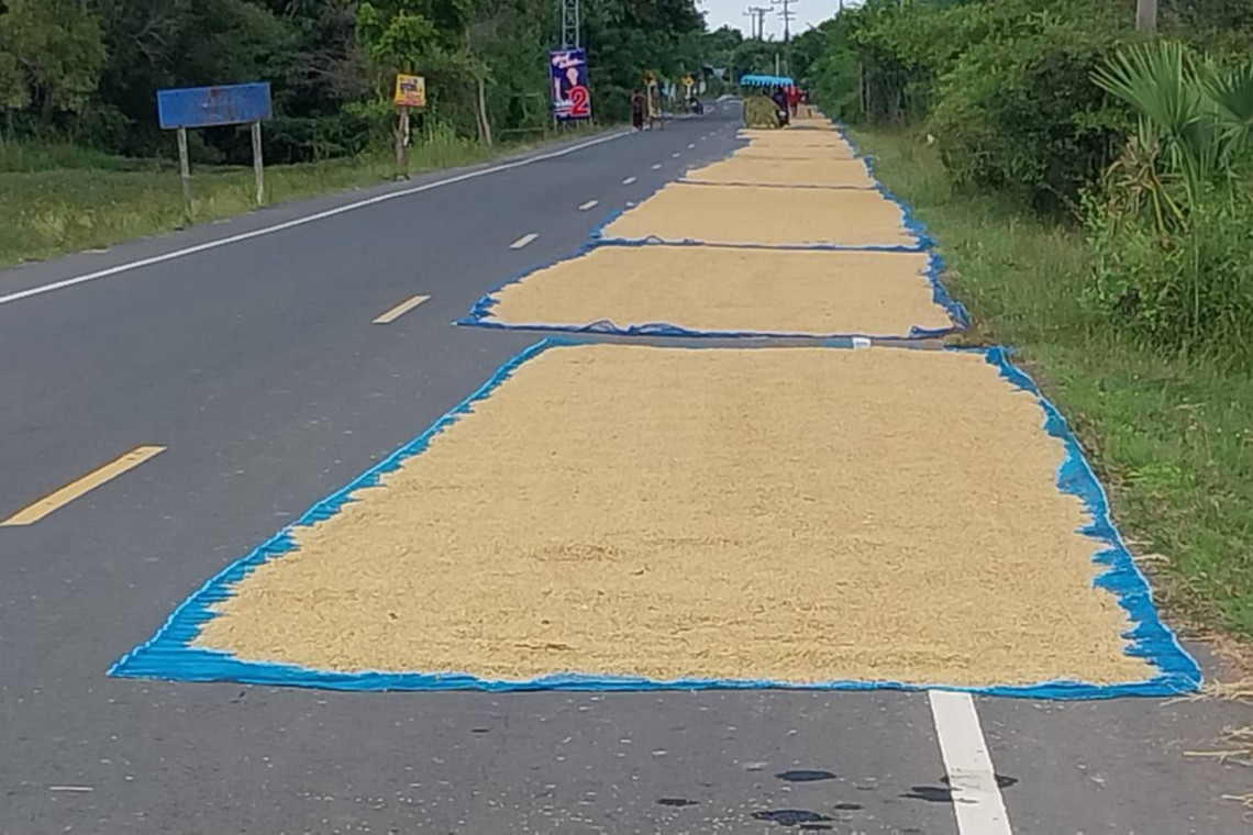 ตำรวจเมืองช้างเตือนตากข้าวบนถนน มีความผิด ม.19 และพ.ร.บ.จราจร