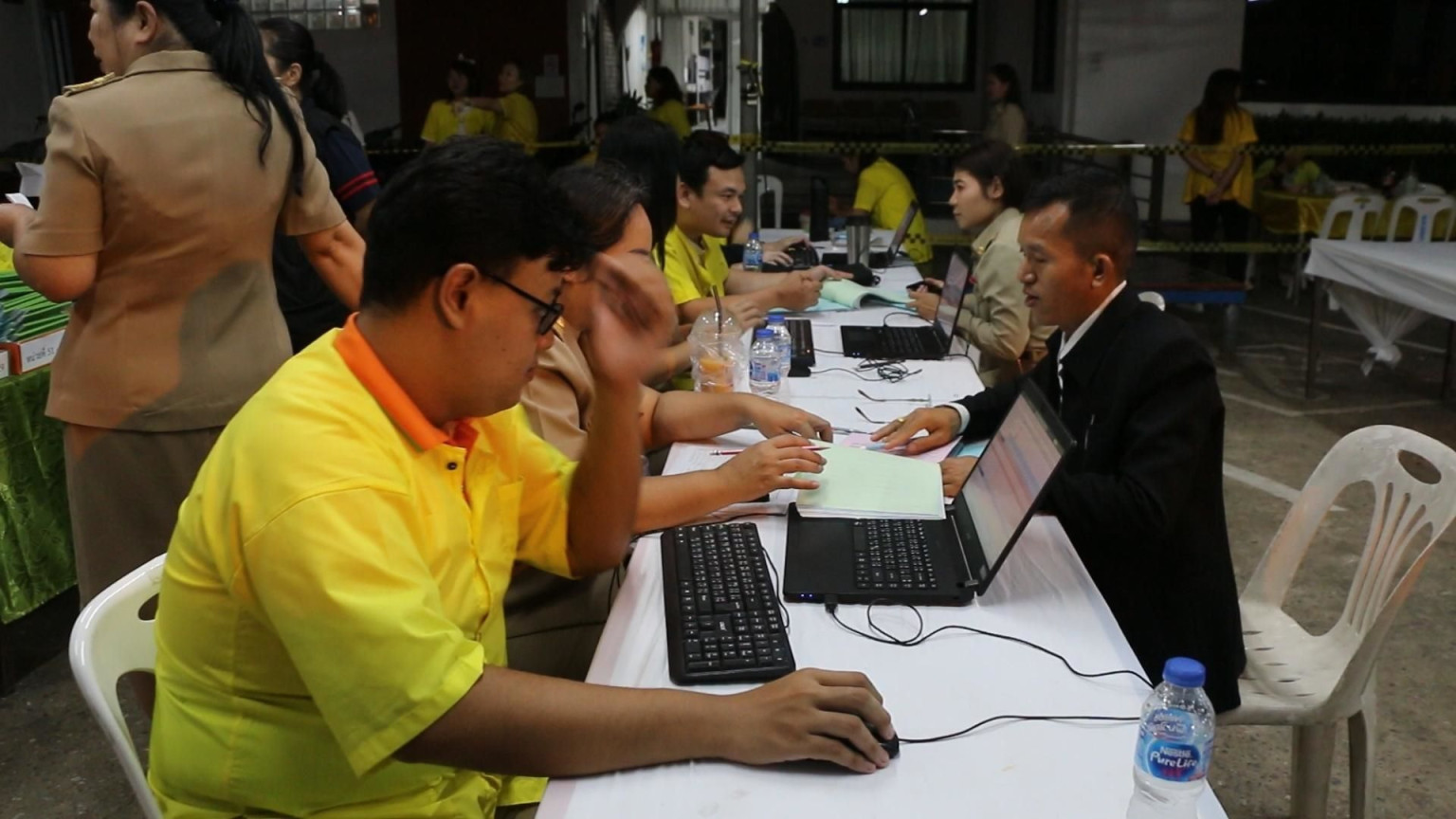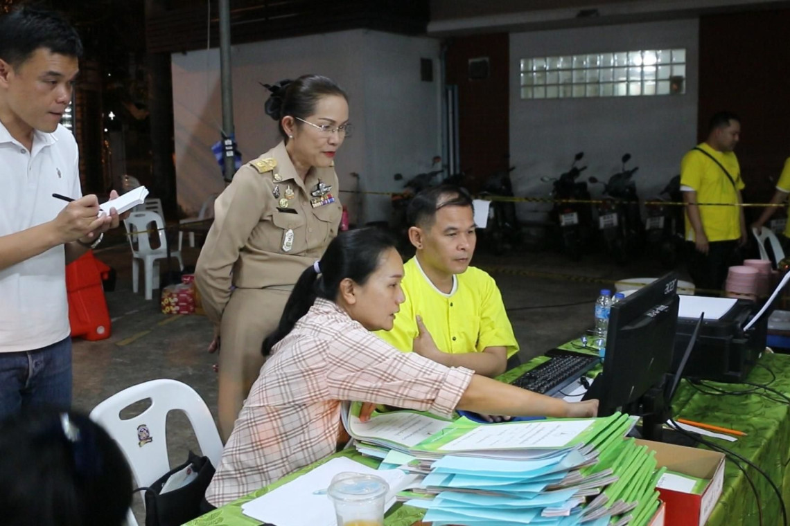 วันที่ 3 พ.ย.2567 เวลา 19.00 น.ผู้สื่อข่าวรายงานบรรยากาศการนับคะแนนเลือกตั้ง นายก อบจ.ขอนแก่น หลังบางเขตเลือกตั้งมีการนับคะแนนไปแล้วมากถึงร้อยละ 70 โดยเฉพาะเขตเลือกตั้งที่ 1 ต.ในเมือง อ.เมืองขอนแก่น พบว่าการนับคะแนนจากทั้ง 129 หน่วยเลือกตั้งในเขตเมืองเสร็จสิ้นแล้วและอยู่ในช่วงของการจัดส่งผลคะแนนให้กับหน่วยรวมคะแนนกลางเทศบาลนครขอนแก่น โดยคะแนนล่าสุดพบว่า หมายเลข 1 นายวัฒนา ช่างเหลา ได้ 2,113 คะแนน หมายเลข 2 นายพงษ์ศักดิ์ ตั้งวานิชกพงษ์ ได้ 7,450 คะแนน และหมายเลข 3 นายโต บูรพา สิมมาทัน ได้ 2,703 คะแนน