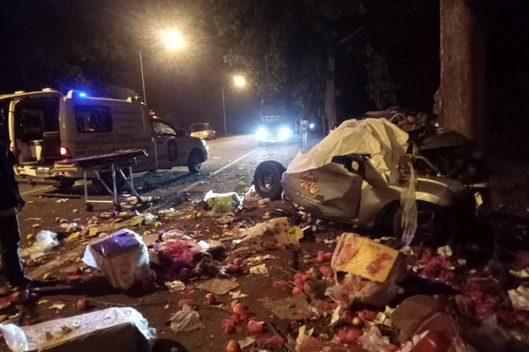 2 พ่อค้าผลไม้ตลาดสี่มุมเมือง ทำเวลาส่งของที่ตลาด อ.สังขละบุรี กาญจน์ ตูมเดียว ดับคาซาก 1 สาหัส 1 ที่ไทรโยค กาญจน์