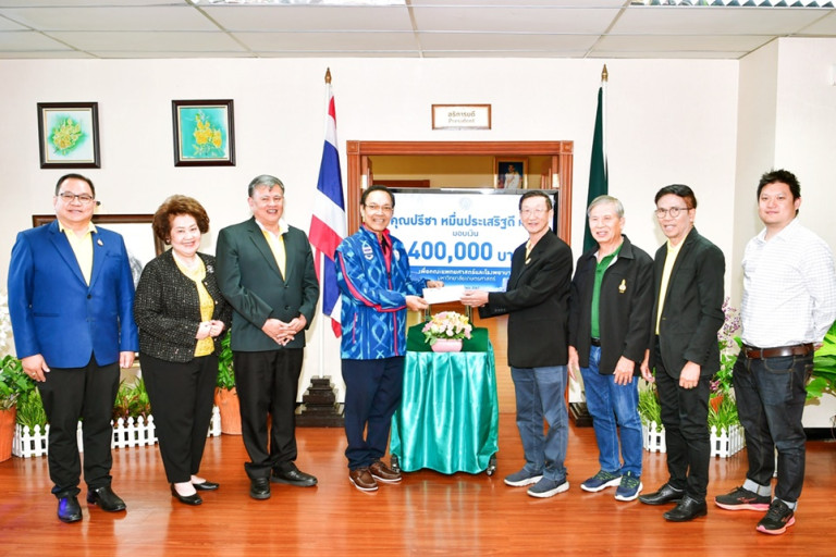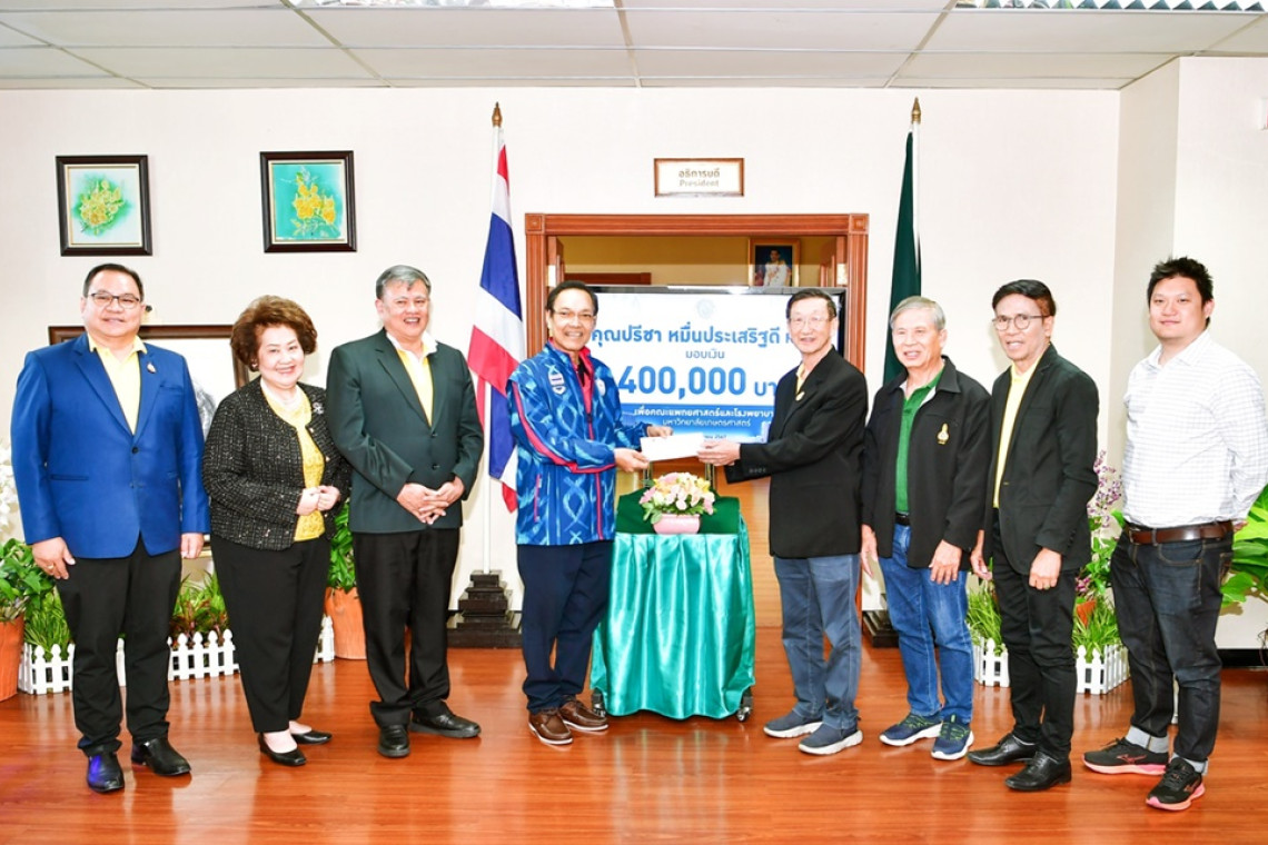 เมื่อวันที่ 4 พ.ย.67 ดร.จงรัก วัชรินทร์รัตน์ อธิการบดีมหาวิทยาลัยเกษตรศาสตร์ รับมอบเงินจาก คุณเอเดรียน - คุณพรทิพย์ ปีเปอร์ KU 28 จำนวน 50,000 บาท และจาก คุณปรีชา หมื่นประเสริฐดี KU 29 จำนวน 400,000 บาท เพื่อสมทบการสร้างคณะแพทยศาสตร์และโรงพยาบาลมหาวิทยาลัยเกษตรศาสตร์ โดยมีดร.ดำรงค์ ศรีพระราม รองอธิการบดีฝ่ายบริหารและความเป็นกลางทางคาร์บอน ผศ.ดร.นุชนาถ มั่งคั่ง รองอธิการบดีฝ่ายการเงินและบริหารทรัพย์สิน ผศ.ดร.กฤษณ์ วันอินทร์ รองอธิการบดีฝ่ายนวัตกรรมและพันธกิจเพื่อสังคม ร่วมเป็นสักขีพยาน ณ อาคารสารนิเทศ 50 ปี มหาวิทยาลัยเกษตรศาสตร์