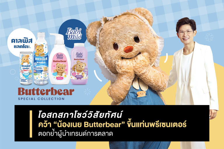 ทั้งนี้เตรียมพบกับคอลเลกชันพิเศษจาก “คาลพิส แลคโตะ” และ “เบบี้ มายด์” ร่วมกับ “น้องเนย Butterbear” ในรูปแบบสินค้าลิมิเต็ด เอดิชั่นสุดน่ารัก แพ็กเกจจิ้งดีไซน์สุดคิวท์ พร้อมของพรีเมี่ยมสุดพิเศษ และกิจกรรมทางการตลาดแบบจัดเต็ม ที่จะมาเติมเต็มพลังบวกและส่งมอบความสุขในทุก ๆ วัน พร้อมกับผลิตภัณฑ์ใหม่ที่น้องเนยร่วมสร้างสรรค์มาเพื่อมัดใจเหล่าแฟนคลับและมัมหมีโดยเฉพาะ โอสถสภาเชื่อมั่นว่าความน่ารักสดใสของน้องเนยจะช่วยสร้างสีสันให้กับ แบรนด์และมอบความสุขให้กับผู้บริโภคในช่วงปลายปีนี้ได้อย่างแน่นอน