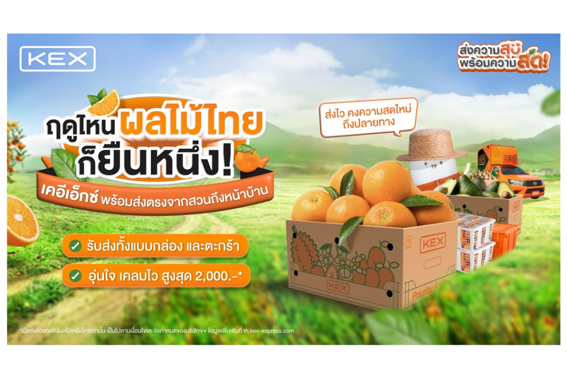 บริษัท เคอีเอ็กซ์ เอ็กซ์เพรส (ประเทศไทย) จำกัด (มหาชน) หรือ (KEX) ผู้นำด้านธุรกิจจัดส่งพัสดุด่วนทั่วไทย พร้อมตอบโจทย์ความเชื่อมั่นของลูกค้า ส่งตรงผลไม้สดจากสวนถึงมือผู้บริโภค ด้วยบริการจัดส่งที่มั่นใจได้ ในนวัตกรรมกล่องที่ออกแบบมาเพื่อผลไม้โดยเฉพาะ คำนึงถึงความปลอดภัย ให้ผลไม้คงความสด มั่นใจได้ว่าคุณจะได้รับผลไม้คุณภาพเยี่ยม เหมือนเพิ่งเก็บจากสวน