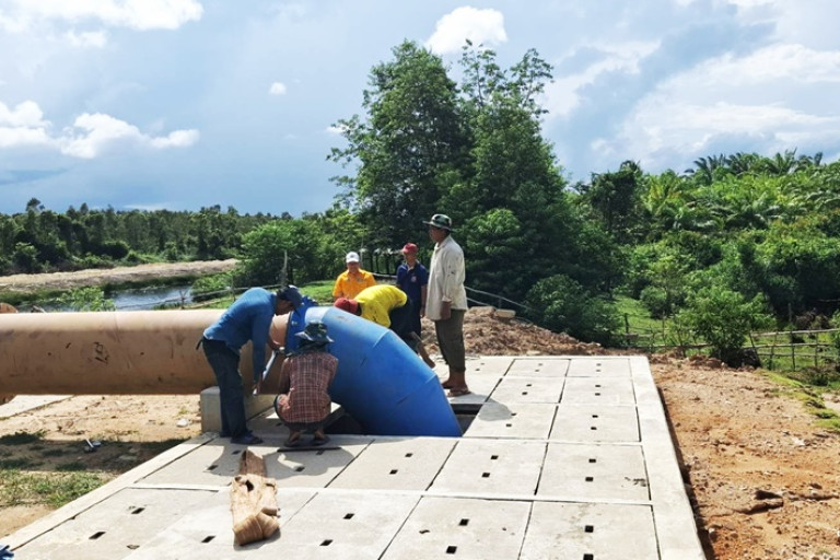 โดยดำเนินการติดตั้งอุปกรณ์เครื่องสูบน้ำระบบไฮดรอลิค (HYDRO FLOW) ณ ประตูระบายน้ำปิเหล็ง 1 หมู่ที่ 7 บ้านปิเหล็ง ตำบลสุไหงปาดี อำเภอสุไหงปาดี จังหวัดนราธิวาส