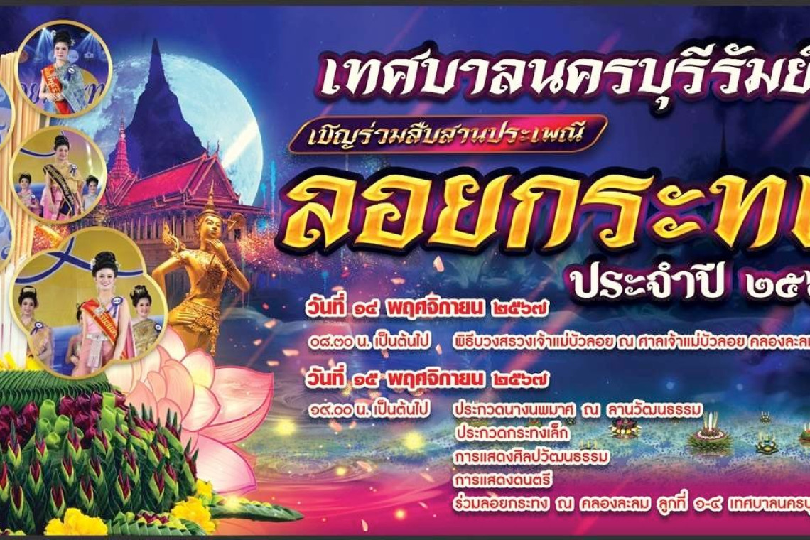 เทศบาลนครบุรีรัมย์ เตรียมจัดงานสืบสานประเพณีลอยกระทง อนุรักษ์วัฒนธรรมประเพณีไทย เน้นนำวัสดุจากธรรมชาติประดิษฐ์กระทงที่ย่อยสลายง่าย กิจกรรมการบวงสรวงเจ้าแม่บัวลอย ชมการประกวดนางนพมาศ การประกวดกระทงเล็ก และการแสดงบนเวที