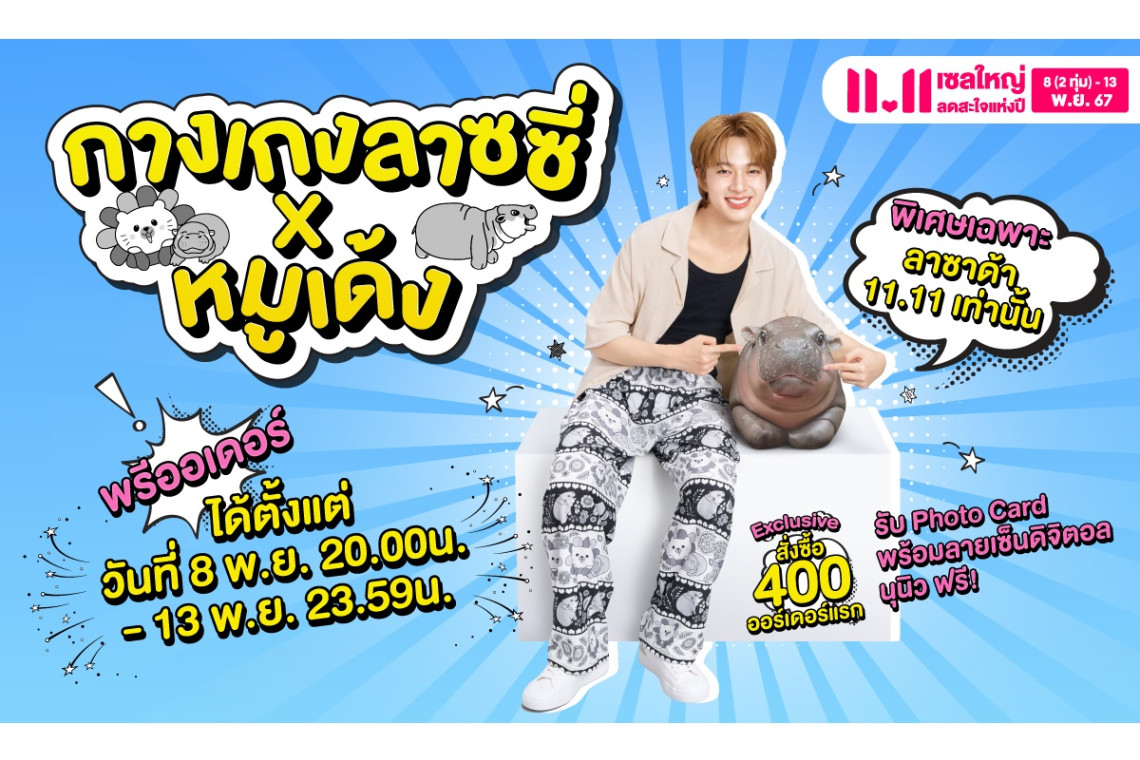 เพิ่มความพิเศษอีกเด้ง ลาซาด้า ยังได้ นุนิว-ชวรินทร์ เพริศพิริยะวงศ์ นักร้อง-นักแสดงขวัญใจ Gen Z มาร่วมถ่ายแบบเพื่อโปรโมตคอลเล็กชันสุดเอ็กซ์คลูซีฟ พร้อมชวนทุกคนมา “พรีออร์เดอร์” กางเกงลาซซี่ X หมูเด้ง ในแคมเปญ 11.11 เซลใหญ่ ลดสะใจแห่งปี โดยลาซาด้าเตรียมขนทัพไอเท็มฮิต จัดเต็มส่วนลดหลายต่อ และช้อปสนุกถูกใจกับการลุ้นรีวอร์ดยิ่งใหญ่กว่าเดิม พร้อมขยายวันให้ช้อปได้จุใจยิ่งขึ้น