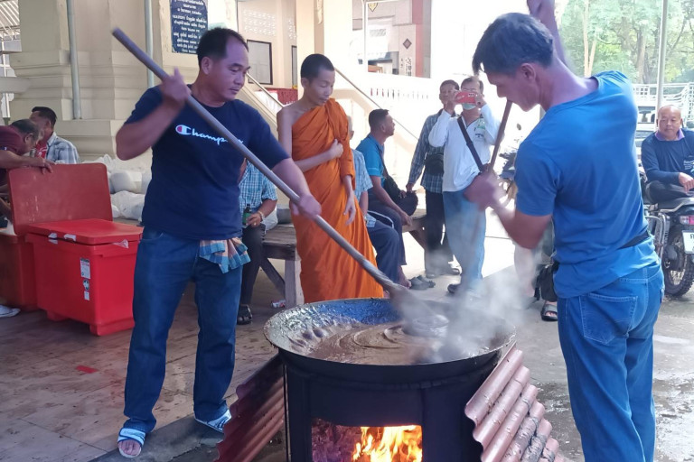 ชาวไทยเชื้อสายไท - ยวน ต.ดอนแร่ อ.เมือง จ.ราชบุรี ร่วมประเพณีกวนกาละแม เตรียมแจกประชาชนที่มาร่วมงานบุญกฐินสร้างความรักความสามัคคีในชุมชนที่สืบทอดมาเกือบ 100 ปี 1 ปีได้กินเพียงครั้งเดียว