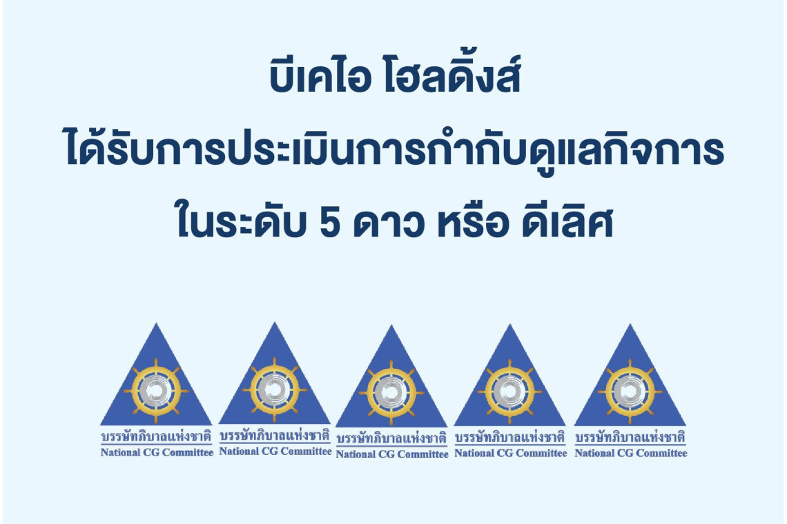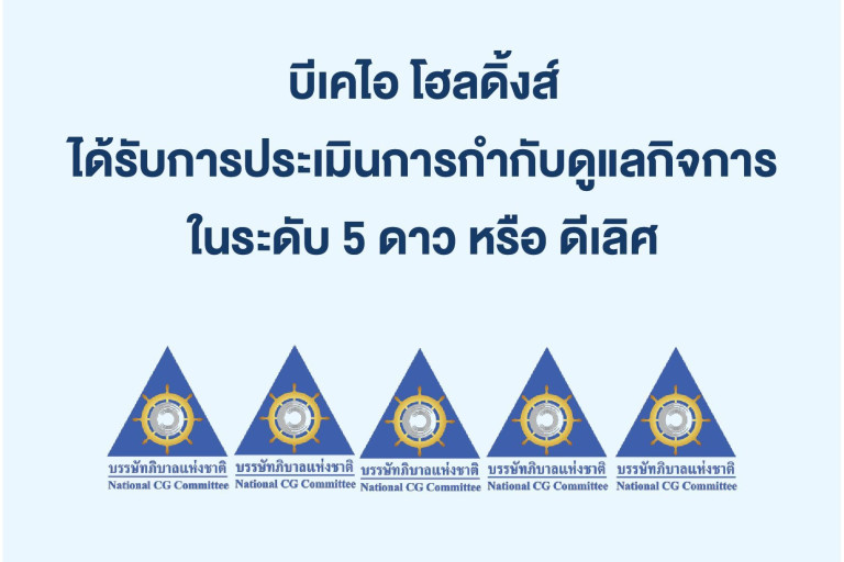 บริษัท บีเคไอ โฮลดิ้งส์ จำกัด (มหาชน) หรือ BKIH ได้รับคะแนนการประเมินการกำกับดูแลกิจการบริษัทจดทะเบียนไทย ประจำปี 2567 (Corporate Governance Report of Thai Listed Companies : CGR) ในระดับ 5 ดาว หรือ “ดีเลิศ” (Excellent CG Scoring) จัดโดยสมาคมส่งเสริมสถาบันกรรมการบริษัทไทย ซึ่งได้รับการสนับสนุนจากตลาดหลักทรัพย์แห่งประเทศไทย (ตลท.) โดย บีเคไอ โฮลดิ้งส์ ได้รับคะแนนประเมิน 103 คะแนน สูงกว่าคะแนนเฉลี่ยของบริษัทจดทะเบียนไทยโดยรวม และได้รับการจัดอันดับอยู่ใน Quartile2 ของบริษัทจดทะเบียนกลุ่มธุรกิจการเงิน สะท้อนให้เห็นถึงศักยภาพการดำเนินธุรกิจของบริษัทฯ ที่ให้ความสำคัญในการกำกับดูแลกิจการที่ดีภายใต้หลักบรรษัทภิบาล โดยคำนึงถึงผู้มีส่วนได้เสียทุกกลุ่ม และการเปิดเผยข้อมูลอย่างโปร่งใสตรวจสอบได้ ควบคู่ไปกับการดำเนินธุรกิจให้เติบโตอย่างยั่งยืน รวมถึงการปรับบทบาทและภาวะผู้นำของคณะกรรมการในเชิงรุกมากขึ้น