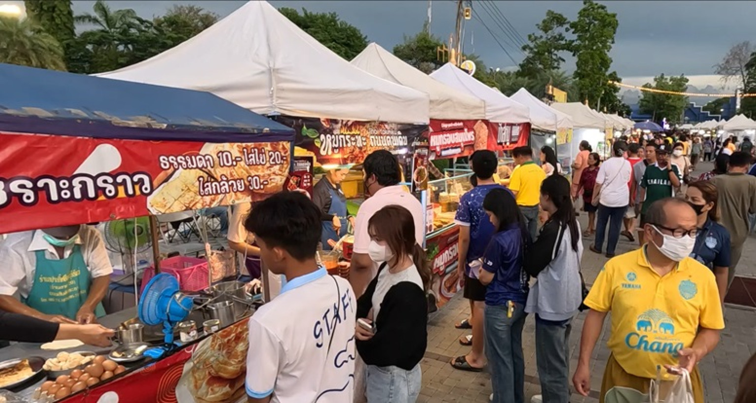 วันที่ 10 พ.ย.67 ผู้สื่อข่าวรายงานว่า ที่บริเวณถนนคนเดิน ‘เซราะกราว วอล์คกิ้ง สตรีท’ เทศบาลนครบุรีรัมย์ หน้าสำนักงานเทศบาลนครบุรีรัมย์ จากสี่แยกถนนจิระ ถึงสี่แยกถนนพิทักษ์ ต.ในเมือง อ.เมือง จ.บุรีรัมย์ ได้มีประชาชนและนักท่องเที่ยว ทั้งชาวไทยและต่างประเทศ ทั้งและในและต่างจังหวัด ต่างพากันมาเดินเที่ยวชม เลือกซื้อสินค้า ที่มีตั้งแต่อาหารการกิน ทั้งอาหารปรุงสำเร็จ , อาหารปรุงแต่ง , เครื่องดื่มเพื่อสุขภาพ , สินค้าหัตถกรรม, เครื่องประดับ, สิ่งประดิษฐ์ , ของที่ระลึก และสินค้าเบ็ดเตล็ด รวมถึงตลาดสีเขียวที่เกษตรกรจากต่างอำเภอนำผักสดปลอดสารพิษ มาวางจำหน่ายในราคาประหยัด จาก 430 ร้านค้า ที่นำสินค้ามาวางขายให้กับประชาชนและนักท่องเที่ยว ได้เลือกชม เลือกชิม และซื้อ กันอย่างคึกคัก ทุกสัปดาห์ ซึ่งคาดว่าในแต่ละสัปดาห์จะมีเงินสะพัดหลายแสนบาท
