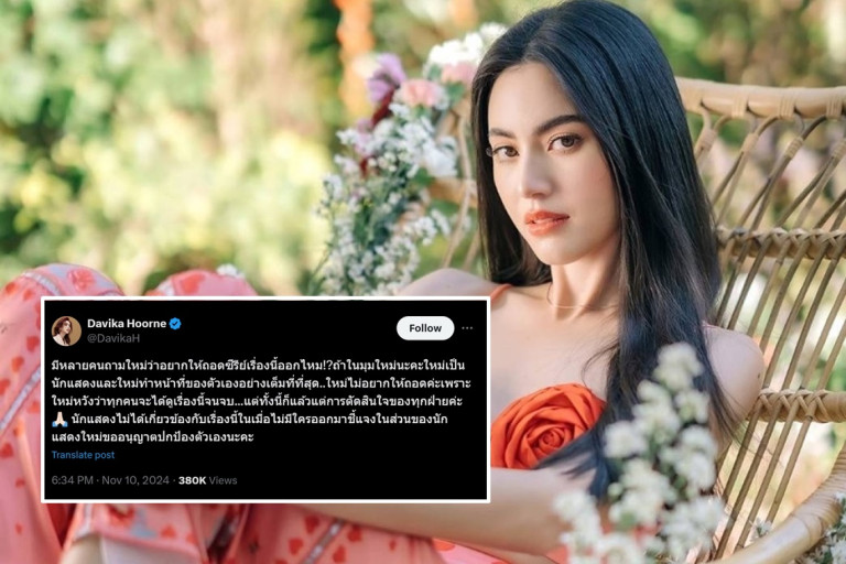 ล่าสุดนางเอกดัง ใหม่ ดาวิการ เคลื่อนไหวด้วยการโพสต์ข้อความผ่านทางโลกออนไลน์ อย่าง X ในประเด็นดราม่า มีข้อความว่า