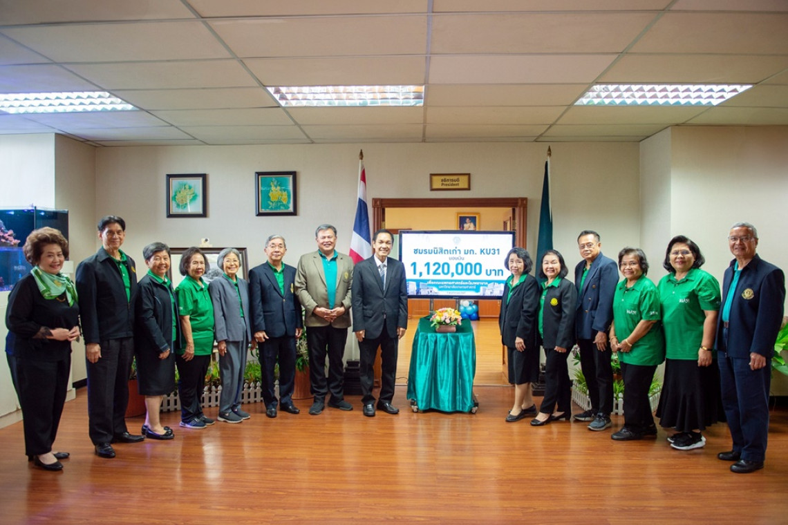 ดร.จงรัก วัชรินทร์รัตน์ อธิการบดีมหาวิทยาลัยเกษตรศาสตร์ รับมอบเงินบริจาคจำนวน 1,120,000 บาท จาก นิสิตเก่ามหาวิทยาลัยเกษตรศาสตร์ KU รุ่นที่ 31 เพื่อร่วมสมทบการสร้างโรงพยาบาลมหาวิทยาลัยเกษตรศาสตร์ คณะแพทยศาสตร์ มหาวิทยาลัยเกษตรศาสตร์ ภายใต้โครงการอุทยานการแพทย์มหาวิทยาลัยเกษตรศาสตร์ โดยมี ดร.ดำรงค์ ศรีพระราม รองอธิการบดีฝ่ายบริหารและความเป็นกลางทางคาร์บอน และ ผศ.ดร.นุชนาถ มั่งคั่ง รองอธิการบดีฝ่ายการเงินและบริหารทรัพย์สิน มหาวิทยาลัยเกษตรศาสตร์ ร่วมเป็นสักขีพยาน ณ ห้องอธิการบดี ชั้น 4 อาคารสารนิเทศ 50 ปี มหาวิทยาลัยเกษตรศาสตร์