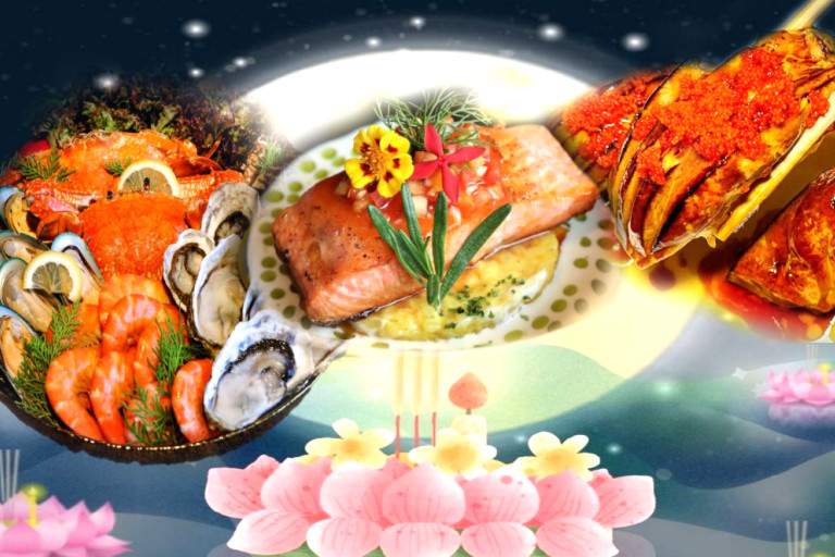 โดยอิ่มอร่อยกับบุฟเฟต์นานาชาติพร้อมซีฟู้ดและซูชิพรีเมียมมื้อเย็น ทั้งฟัวกราส์ วากิว ปลาไหลญี่ปุ่น เทปปันยากิ ซุปเห็ดทรัฟเฟิล ขาหมูในตำนาน ข้าวต้มปลากะพง กุ้งเผา แซลมอนดองซีอิ๊วเกาหลี พาสต้า เป็นต้น รวมเครื่องดื่มน้ำอัดลม ชา-กาแฟ ของหวานทั้งไทย เบเกอรี่ ไอศกรีม และผลไม้ตามฤดูกาล เพียงท่านละ 1,206 บาท (จากปกติ 1,700 บาท) ระหว่างเวลา 18.00 – 22.00 น. ที่ห้องดิเอมเมอรัลด์ ค็อฟฟี่ช็อพ ซึ่งตกแต่งบรรยากาศแสงสีสวยงามรับเทศกาล เมื่อทานเสร็จสามารถรับกระทงฟรี ไปลอยเพื่อขอขมาพระแม่คงคา