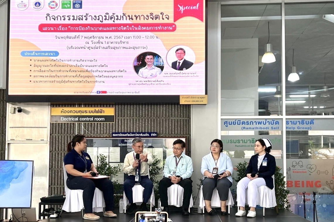 รามาฯ จัดสัปดาห์สุขภาพจิต ตระหนักถึงปัญหาสุขภาพจิตของบุคลากรในองค์กร บาดแผลทางจิตใจในการทำงาน เป็นเพชรฆาตเงียบที่องค์กรจำเป็นต้องยกระดับการป้องกัน ทั้งการสร้างภูมิคุ้มกันจิตใจของบุคลากร และสร้างระบบขององค์กรที่บุคลากรรับรู้ได้ถึงความปลอดภัยทางจิตใจในการทำงาน