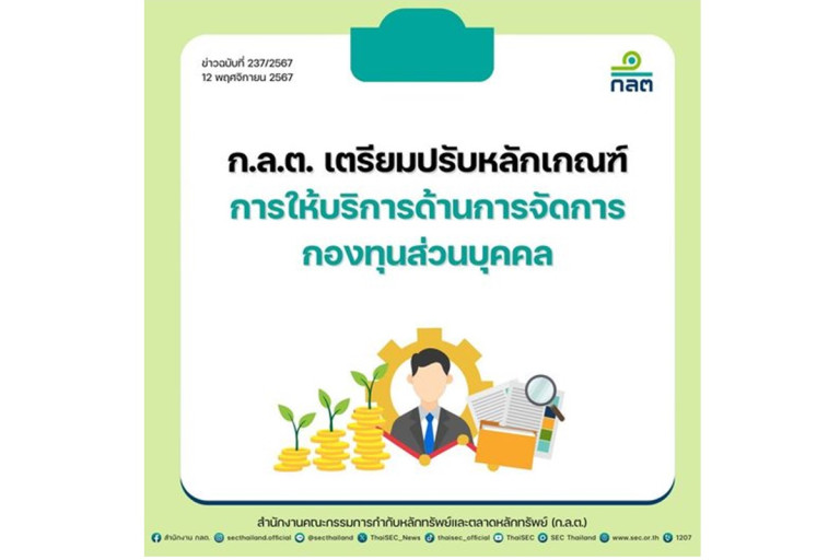 ก.ล.ต. เปิดรับฟังความคิดเห็นหลักการและร่างประกาศเกี่ยวกับการปรับปรุงหลักเกณฑ์การให้บริการด้านการจัดการกองทุนส่วนบุคคล (private fund) เพื่อให้ผู้ลงทุนเข้าถึงบริการจัดการลงทุนได้ในวงกว้างโดยมีข้อมูลเพียงพอให้เลือกลงทุน และได้รับการคุ้มครองเพียงพอ