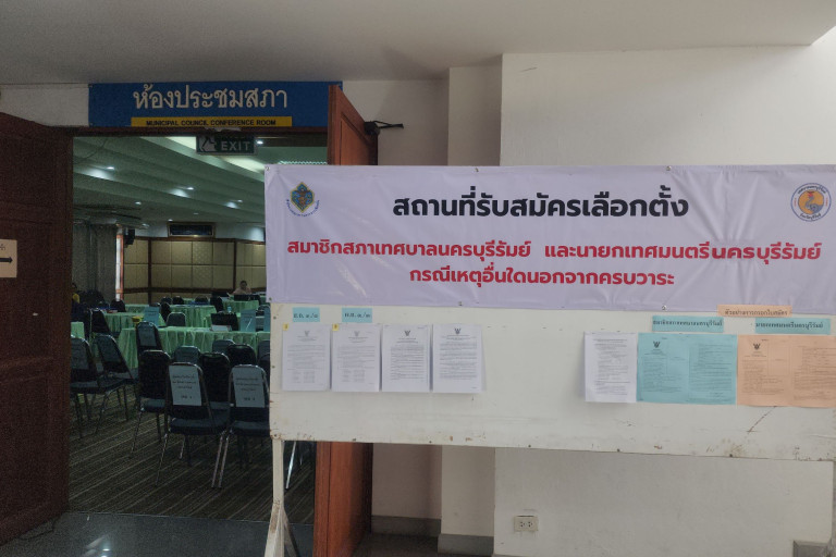 การเปิดรับสมัครเลือกตั้งเทศบาลนครบุรีรัมย์ วันที่สอง เงียบเหงา ไร้เงา ผู้สมัคร ทั้งนายกเทศมนตรีและสมาชิกสภาเทศบาล ปล่อยให้เจ้าหน้าที่นั่งรอเก้อ ผ่านไปสองวันมายื่นสมัคร 27 คน สมัครชิงนายกฯ 1 คน และผู้สมัคร ส.ท. 26 คน ใน 4 เขต จาก “กลุ่มคนบุรีรัมย์” 24 คน สมัคร 4 เขตๆ ละ 6 คน และกลุ่มอิสระ 2 คน จะเปิดรับสมัครถึงวันที่ 15 พ.ย.นี้