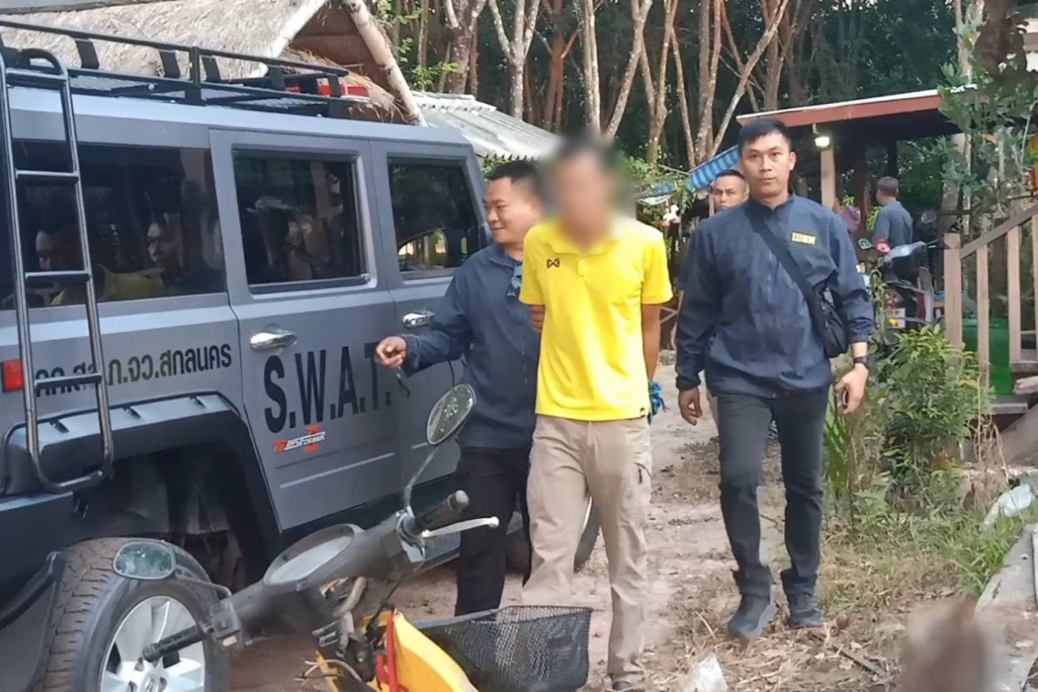 เมื่อวันที่ 13 พฤศจิกายน 2567 ที่กองบังคับการตำรวจภูธรจังหวัดสกลนคร พ.ต.อ.อัษดิน สมศรี รอง ผบก.ภ.จว.สกลนคร เปิดเผยถึงคดีคนร้าย 5-7 คน ใช้รถยนต์ 2 คัน บุกเข้าปล้นไม้พะยูงและอาวุธปืนลูกซองของ จนท.หน่ายปัองกันและรักษาป่าที่ สน.2 (วาริช-พรรณา)บ.กุดตะกาบ ต.วาริชภูมิ อ.วาริชภูมิ จ.สกลนคร และอาวุธปืนลูกซองยาวจาก จนท.2 กระบอก พร้อมจับ จนท.3 คนที่เข้าเวรยามมัดกดลงพื้นก่อนที่จะขนไม้พะยูงขนาด ยาง 2.5 เมตร กว้าง 20 ซ.จำนวน 28 ท่อน มูลค่ากว่า 8 แสนบาทนั้น จน จนท.ตำรวจสอบสวนกลาง,ตำรวจภูธร ภาค 4 ,ตำรวจภูธร จ.สกลนคร รวบรวมหลักฐานเพื่อออกหมายจับ นายเทพตะวัน หรืออาท อายุ 35 ปี พนักงานราชการสังกัด หน่วยป้องกันและรักษาป่า ที่ อด 3 อ.ศรีธาตุ จ.อุดรธานี ได้ที่ริมถนน อ.วังสามหมอ จ.อุดรธานี ในชุดลายพราง ควบคุมตัวไปตรวจค้นที่บ้านพักที่ อ.ส่องดาว แต่ไม่พบสิ่งของผิดกฎหมาย
