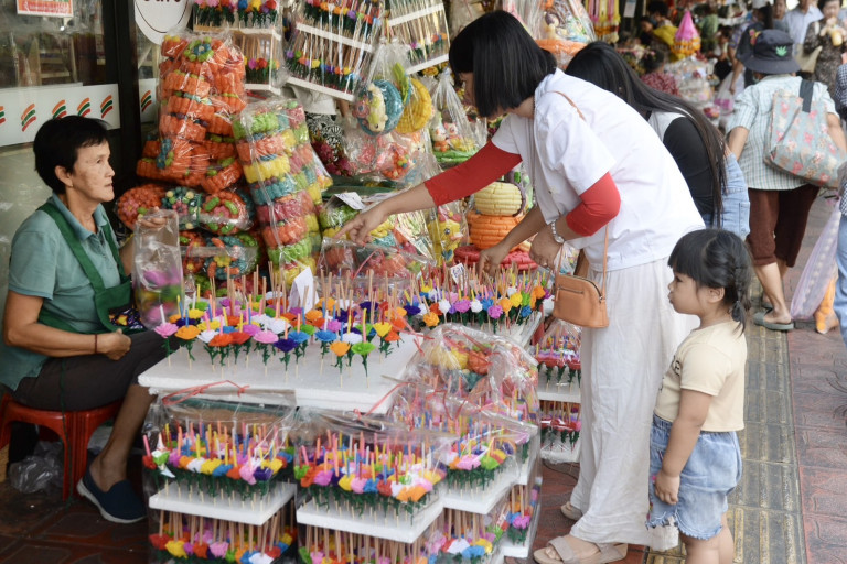 วันที่ 13พ.ย.67-ประชาชนเลือกซื้อวัสดุสำหรับทำกระทง โดยเน้นวัตถุดิบที่ทำจากธรรมชาติ เพื่อนำไปทำกระทงเอง และทำเพื่อการจำหน่าย ในปีนี้วันลอยกระทง ตรงกับคืนวันเพ็ญ เดือน 12 หรือวันขึ้น 15 ค่ำเดือน 12 วันศุกร์ที่ 15 พฤศจิกายนนี้ ที่บริเวณปากคลองตลาด ถนนจักรเพชร
