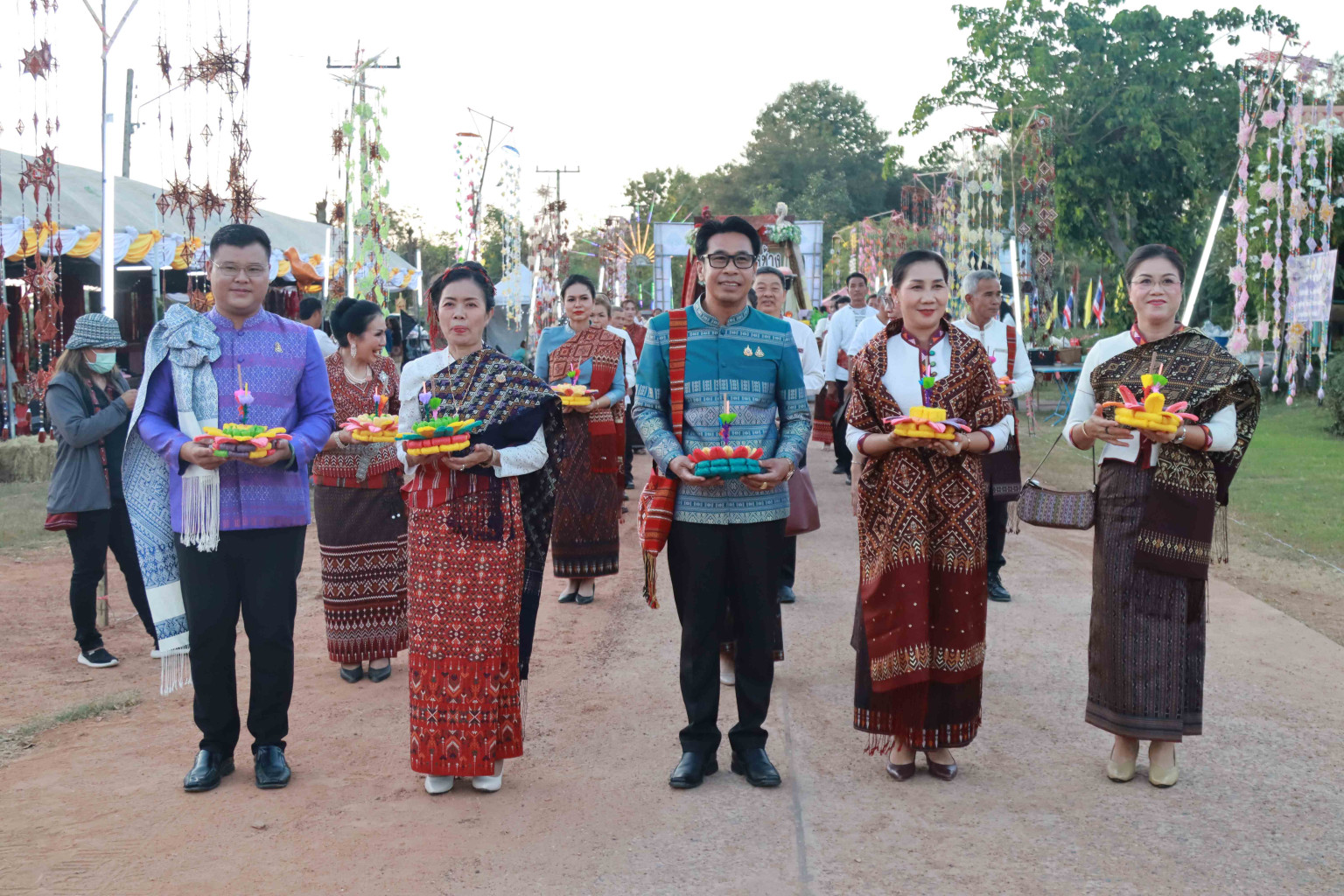 วันที่ 13 พ.ย.67 ที่ ต.หนองช้าง อ.สามชัย จ.กาฬสินธุ์ นายพงศ์ภรณ์ ภาระขันธ์ นายก อบต.หนองช้าง อ.สามชัย จ.กาฬสินธุ์ พร้อมด้วยส่วนราชการในพื้นที่ สมาชิกสภา ผู้นำชุมชน พี่น้องประชาชน เยาวชน ร่วมกันจัดงานสืบสานประเพณีลอยกระทงผู้ไทย ต.หนองช้าง ประจำปี 67 โดยมีการจัดริ้วขบวนแห่กระทงขนาดใหญ่ ที่ตกแต่งด้วยผ้าไหมผู้ไทย อัตลักษณ์ที่โดดเด่นของชาวผู้ไทยหนองช้าง ที่ได้ชื่อว่า “ต้นน้ำแพรวา ราชินีแห่งไหม” มูลค่าหลายสิบล้านบาท รวมทั้งขบวนนางรำจาก 8 หมู่บ้าน แต่งกายด้วยผืนผ้าที่ตัดเย็บจากผ้าไทย ฝีมือประณีตวิจิตร สวยงาม ประกอบท่าร่ายรำขอขมาพระแม่คงคา ขณะเคลื่อนขบวนจากหมู่บ้าน ถึงบริเวณจัดงาน ที่ทำการ อบต.หนองช้าง ด้วยระยะทางเกือบ 2 กม.