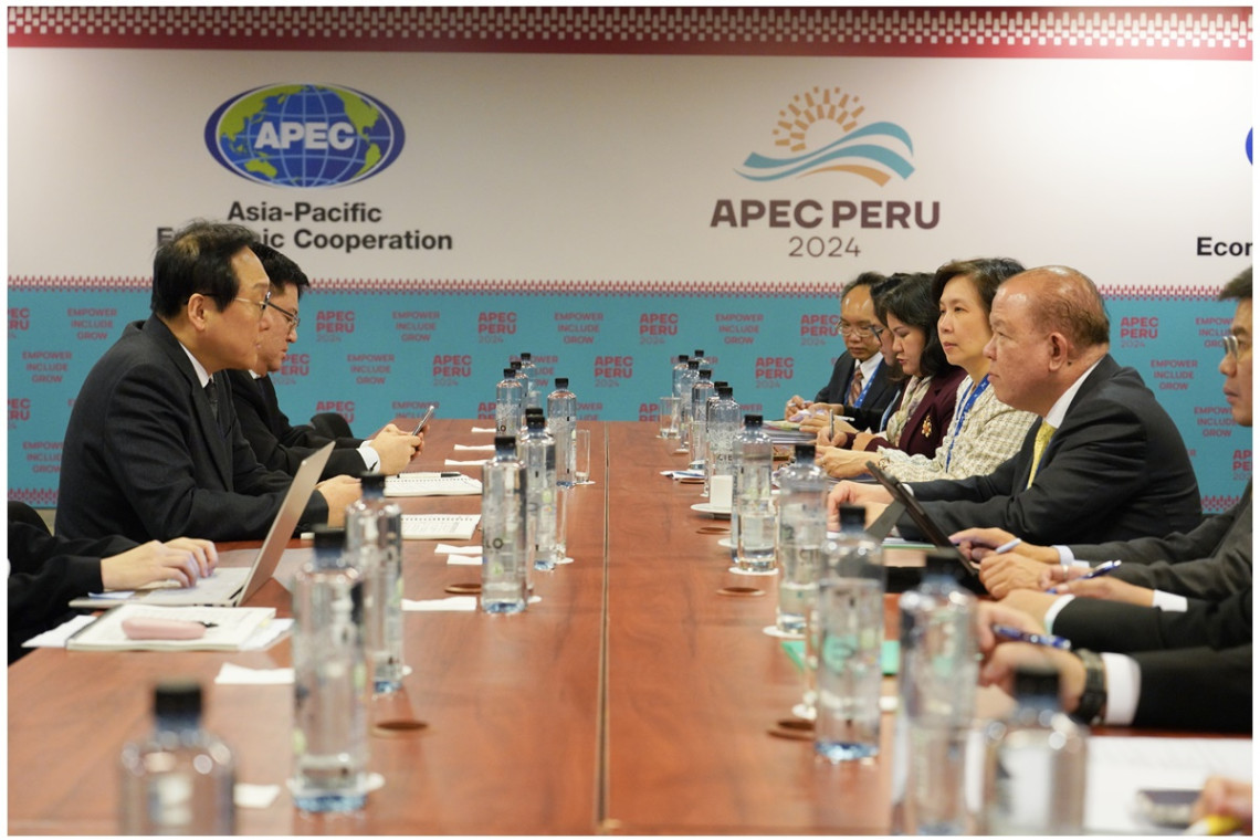 ไทยเนื้อหอม! "พิชัย" ถกเกาหลีใต้ที่เปรู มั่นใจตัวเลขลงทุนอุตฯไฮเทค EV-PCB ในไทยเพิ่มสูงขึ้น พร้อมเร่งสรุปผลเจรจาความตกลงหุ้นส่วนทางเศรษฐกิจ ไทย-เกาหลีใต้ ภายในปีหน้า