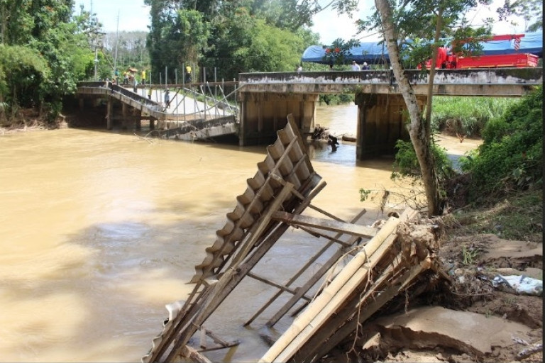 นางเป๊กลิ่น แซ่ห้า ชาวบ้านที่ได้รับผลกระทบในพื้นที่ เล่าว่า ตั้งแต่สะพานขาดลำบากมาก เพราะสามีต้องเดินทางไปฟอกไตที่โรงพยาบาลเบตง ตามหมอนัด จะเดินทางไปกรีดยางก็ไม่ได้ จะออกไปจับจ่ายซื้ออาหารที่ตลาดสดก็ไปไม่ได้ เนื่องจากเจ้าหน้าที่ห้ามรถทุกชนิดผ่าน แต่พอได้เห็นเจ้าหน้าที่และชาวบ้านชาวไทยพุทธ ไทยมุสลิมและชาวไทยเชื้อสายจีนรวมพลังสามัคคีช่วยกันทำสะพานทางเบี่ยงเพื่อใช้สัญจรชั่วคราวก็รู้สึกดีใจมากและขอบคุณทุกคนมากๆ ที่ได้ช่วยเหลือกัน