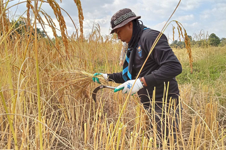 ทหารพราน 2107 มุกดาหาร ช่วยชาวนาในพื้นที่ อ.ดอนตาล เกี่ยวข้าวแบ่งเบาภาระ