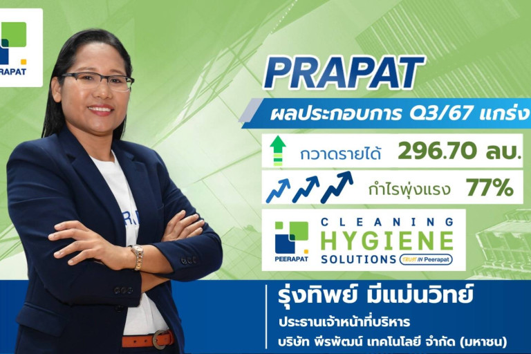 PRAPAT เปิดงบไตรมาส 3/2567 กำไรสุทธิ 17.49 ล้านบาท โต 77.20% รับแรงหนุนการเติบโตของกลุ่มผลิตภัณฑ์ด้านครัว-รายได้ค่าเช่าและค่าบริการเครื่องล้างจาน รุกสร้างการเติบโตรับช่วงไฮซีซั่น หนุนรายได้ปีนี้เป็นไปตามเป้า