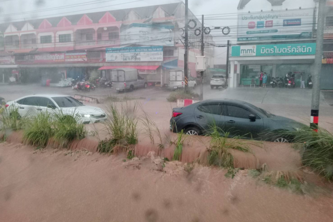 บ่อวินอ่วม หลังพายุฤดูร้อนพ่นพิษทำฝนตกหนักน้ำท่วมถนนหลายสายในพื้นที่