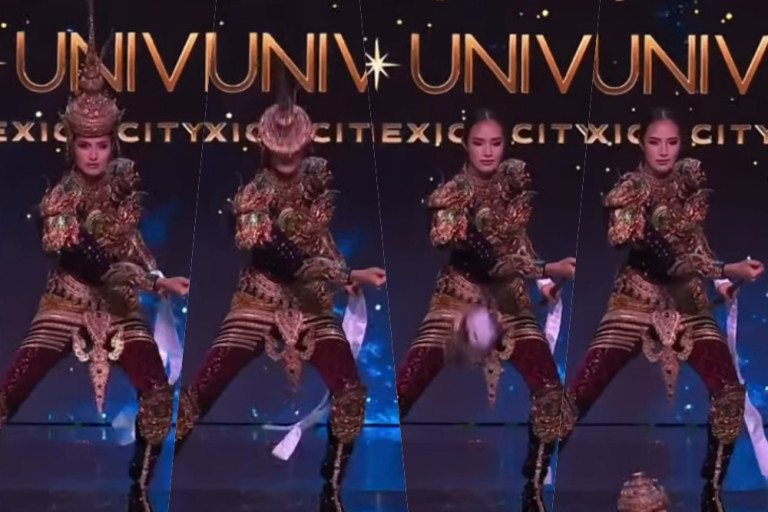 โดยในระหว่างที่ "โอปอล" พรีเซ็นต์ชุดอย่างความตั้งใจอยู่นั้น ชฎาที่สวมใส่กลับร่วงหลุดตกลงมาที่พื้น แต่สาวโอปอลไม่ได้มีท่าทีตกใจยังคงพรีเซ็นต์ชุดต่อด้วยความมีสติเรียกเสียงเชียร์จากแฟนๆ