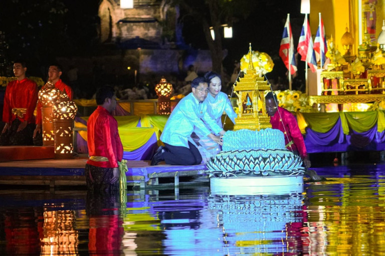 เมื่อวันที่ 15 พ.ย.67 เวลา 22.00 น.นายสมศักดิ์ เทพสุทิน รัฐมนตรีว่าการกระทรวงสาธารณสุข เป็นประธานประกอบพิธีอัญเชิญพระประทีปพระราชทาน ของพระบาทสมเด็จพระเจ้าอยู่หัว สมเด็จพระนางเจ้าสิริกิติ์ พระบรมราชินีนาถ พระราชชนนีพันปีหลวง สมเด็จพระนางเจ้าสุทิดา พัชรสุธาพิมลลักษณ พระบรมราชินี และพระบรมวงศานุวงศ์รวม 12 พระองค์ ลงลอยเป็นปฐมฤกษ์ ในงานประเพณีลอยกระทง เผาเทียน เล่นไฟ จังหวัดสุโขทัย ประจำปี 2567 ณ ตระพังตะกวน อุทยานประวัติศาสตร์สุโขทัย โดยมี ดร.อนงค์วรรณ เทพสุทิน อดีตรัฐมนตรีว่าการกระทรวงทรัพยากรธรรมชาติและสิ่งแวดล้อม นายนพฤทธิ์ ศิริโกศล รองผู้ว่าราชการจังหวัด รักษาราชการแทนผู้ว่าราชการจังหวัดสุโขทัย นางฐิติพร ศิริโกศล รักษาการนายกเหล่ากาชาดจังหวัดสุโขทัย นายเอกชาติ นรจีน ผู้พิพากษาหัวหน้าศาลจังหวัดสุโขทัย พลโท กิตติพงษ์ แจ่มสุวรรณ แม่ทัพภาคที่ 3 และภริยา พลตำรวจตรี อมรศักดิ์ เกษมก์สิริ รองผู้บัญชาการตำรวจภูธรภาค 6 พร้อมภริยา ดร.พรรณศิริ กุลนาถศิริ สมาชิกสภาผู้แทนราษฎร จังหวัดสุโขทัย เขต 1 นายชูศักดิ์ คีรีมาศทอง สมาชิกสภาผู้แทนราษฎรจังหวัดสุโขทัย เขต 2 พร้อมภริยา นางสาวประภาพร ทองปากน้ำ สมาชิกสภาผู้แทนราษฎรจังหวัดสุโขทัย เขต 3 นายจักรวาล ชัยวิรัตน์นุกูล สมาชิกสภาผู้แทนราษฎรจังหวัดสุโขทัย เขต 4 พร้อมภริยา นางสาววนิดา พันธ์สะอาด รองปลัดกระทรวงการท่องเที่ยวและกีฬา นางรักชนก โคจรานนท์ ผู้ตรวจราชการกระทรวงวัฒนธรรม นพ.สมฤกษ์ จึงสมาน อธิบดีกรมการแพทย์แผนไทยและการแพทย์ทางเลือก นางสาวสรินรัตน์ เกิดสกุลรุ่งโรจน์ รองผู้ว่าราชการจังหวัดสุโขทัย นายสมลักษ์ ยกน้อยวงษ์ รองผู้ว่าราชการจังหวัดสุโขทัย ร่วมอัญเชิญพระประทีปตามลำดับ โอกาสนี้หัวหน้าส่วนราชการ ประชาชนและนักท่องเที่ยวร่วมในพิธี