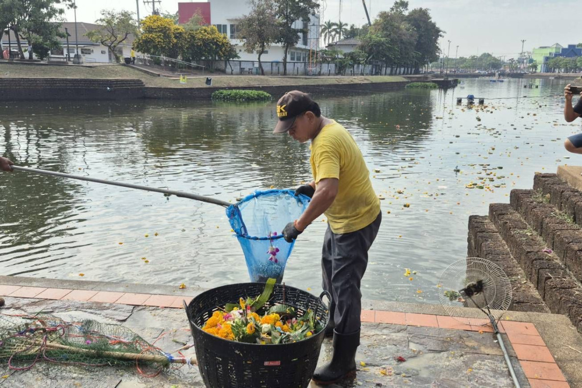 เทศบาลนครบุรีรัมย์ ระดมพนักงานเจ้าหน้าที่เร่งเก็บเศษซากกระทงและขยะมูลฝอยลอยเกลื่อนคลองละลมโบราณทั้ง 6 ลูก คาดไม่ต่ำกว่า 4 ตัน แต่พบปัญหาขนมปัง หวั่นปลากินไม่ทัน อาจทำให้น้ำเสีย