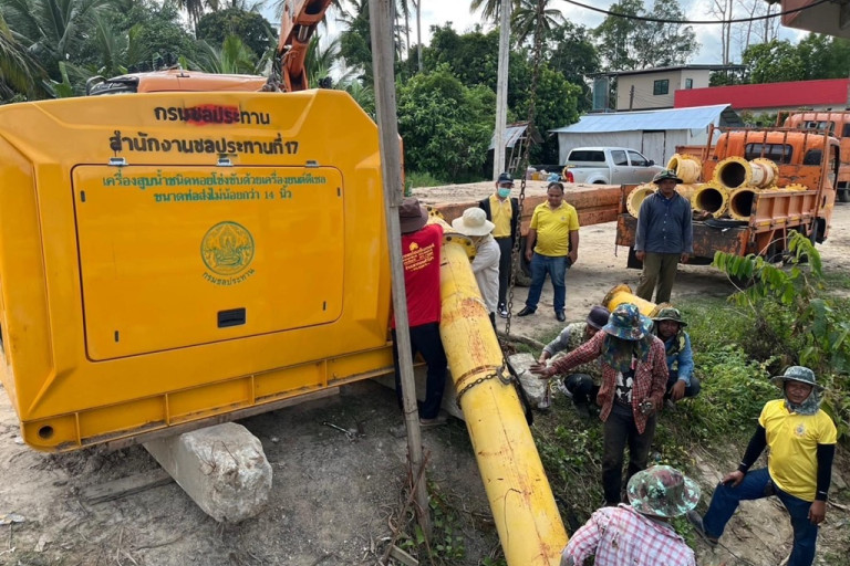 โดยดำเนินการติดตั้งเครื่องสูบน้ำเคลื่อนที่ ขนาด 14 นิ้ว ณ บริเวณท่อระบายน้ำปลักปลา ปลายคลองระบายน้ำศูนย์ราชการ บ้านยะกัง อำเภอเมือง จังหวัดนราธิวาส