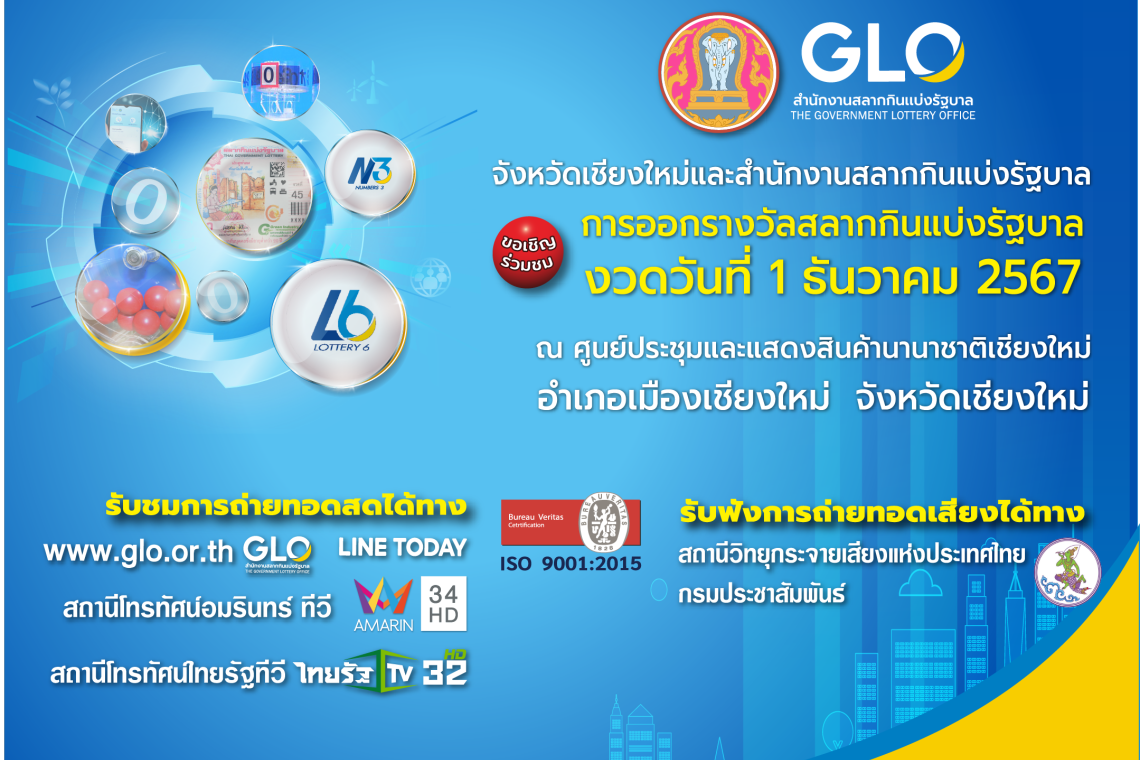 เมื่อวันที่ 19 พฤศจิกายน 2567 พันโท หนุน ศันสนาคม ผู้อำนวยการสำนักงานสลากกินแบ่งรัฐบาล (GLO) เปิดเผยว่า การออกรางวัลสลากกินแบ่งรัฐบาลหกหลัก และสลากกินแบ่งรัฐบาลตัวเลขสามหลัก ในงวดวันที่ 1 ธันวาคม 2567 นี้ สำนักงานสลากฯ จะเดินทางไปออกรางวัลสลากสัญจร ณ ศูนย์ประชุมและแสดงสินค้านานาชาติเชียงใหม่ อำเภอเมืองเชียงใหม่ จังหวัดเชียงใหม่ เพื่อเปิดโอกาสให้ประชาชนในพื้นที่ต่างจังหวัดได้เห็นความโปร่งใสของกระบวนการและวิธีการในการออกรางวัล ตลอดจนอุปกรณ์ที่ใช้ในการออกรางวัลด้วยตนเอง