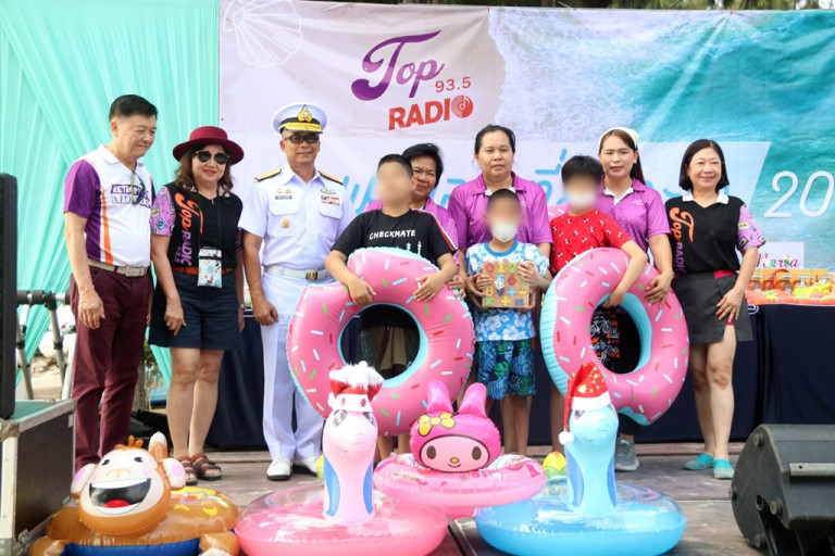 ในช่วงเย็น พล.ร.ท.ธันยกร เสนาลักษณ์ เจ้ากรมกิจการพลเรือนทหารเรือ ได้ลงไปร่วมดูแลหนูน้อยที่กำลังสนุกสนานบันเทิงกับการได้สัมผัสบรรยากาศในการเล่นน้ำทะเล ซึ่งนอกจากจะมีบรรดาครูพี่เลี้ยงลงไปดูแลแล้ว ยังได้จัด “มนุษย์กบ” ลงไปประจำในทะเล เพื่อดูแลโดยมิให้คลาดสายตาตลอดเวลา ทั้งนี้ เจ้ากรมกิจการพลเรือนทหารเรือ ได้เผยกับผู้สื่อข่าวว่า เป็นครั้งแรกที่ได้ประจักษ์อย่างใกล้ชิดในความน่าสงสาร-น่าเห็นใจของบรรดาเด็ก ๆ ผู้พิการซ้ำซ้อน และดีใจมากที่มีส่วนช่วยสร้างความสุขสนุกสนานให้พวกเขาตอนเล่นน้ำทะเลที่หาดน้ำใส แถมยังมีโอกาสได้ร่วมต้อนรับดูแล ถึง 3 วัน 2 คืนอีกด้วย ต้องขอแสดงความชื่นชมและขอบคุณกลุ่มผู้จัดรายการวิทยุ TOP RADIO และทีมงานที่ร่วมโครงการ ขอเป็นกำลังใจให้เดินหน้าทำโครงการดี ๆ อย่างนี้ต่อไป ซึ่งผมมั่นใจอย่างยิ่งว่ากองทัพเรือพร้อมให้การส่งเสริมสนับสนุนอย่างเต็มใจต่อไป