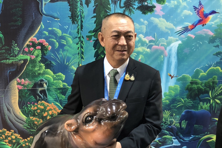 ดร.เฉลิมชัย ศรีอ่อน รัฐมนตรีว่าการกระทรวงทรัพยากรธรรมชาติและสิ่งแวดล้อม (รมว.ทส.) หัวหน้าคณะผู้แทนไทย ได้เยี่ยมชมนิทรรศการผลการดำเนินงานด้านการเปลี่ยนแปลงสภาพภูมิอากาศของประเทศไทย และ Technology and Innovation Zone และการดำเนินกิจกรรมคู่ขนาน ณ Thailand Pavilion ในห้วงการประชุมรัฐภาคีกรอบอนุสัญญาสหประชาชาติว่าด้วยการเปลี่ยนแปลงสภาพภูมิอากาศ สมัยที่ 29 (COP29) ณ กรุงบากู สาธารณรัฐอาเซอร์ไบจาน พร้อมด้วยนายจตุพร บุรุษพัฒน์ ปลัดกระทรวงทรัพยากรธรรมชาติและสิ่งแวดล้อม และคณะผู้บริหารกระทรวงฯ เข้าร่วมเยี่ยมชมฯ และถ่ายรูปกับ “น้องหมูเด้ง” ฮิปโปแคระขวัญใจของชาวไทยและชาวโลกที่คอยดึงดูดความสนใจให้คนเข้ามาร่วมกิจกรรมใน Thailand Pavilion โดยมี ดร.พิรุณ สัยยะสิทธิ์พานิช อธิบดีกรมการเปลี่ยนแปลงสภาพภูมิอากาศและสิ่งแวดล้อมให้การต้อนรับ