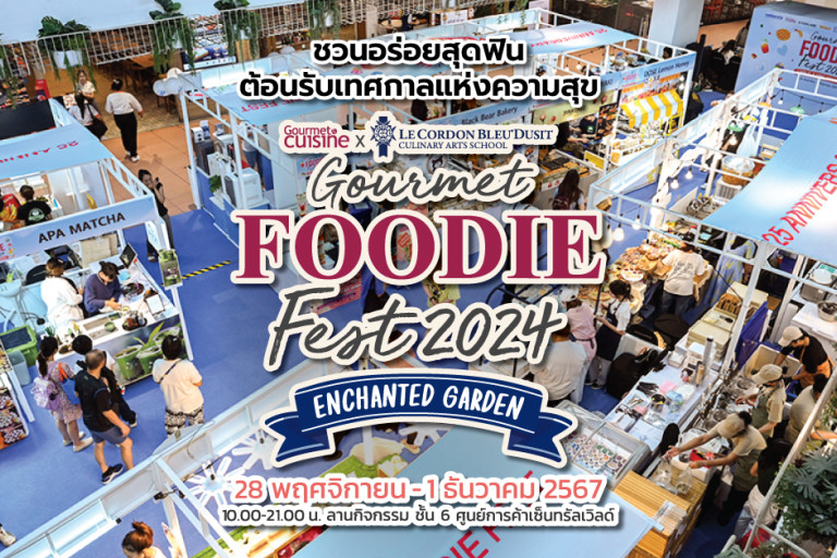 “Gourmet Foodie Fest 2024 Enchanted Garden” จัดโดยนิตยสาร Gourmet & Cuisine ร่วมกับ เลอ กอร์ดอง เบลอ ดุสิต ยกทัพร้านอร่อยสุดปังจากศิษย์เก่า “เลอ กอร์ดอง เบลอ ดุสิต” และร้านเด็ดไว้กว่า 40 ร้าน ครบจบทั้งอาหารคาวหวาน เมนูเบเกอรี่ เครื่องดื่มสุดชิค และของหวานจากวัตถุดิบเกรดพรีเมียมที่คุณจะต้องหลงใหล พร้อมสนุกกับกิจกรรมเวิร์กช็อปฟรี! ตลอดงานในระหว่างวันที่ 28 พฤศจิกายน-1 ธันวาคม 2567 เวลา 10.00-21.00 น. ณ ลานกิจกรรม ชั้น 6 ศูนย์การค้าเซ็นทรัลเวิลด์