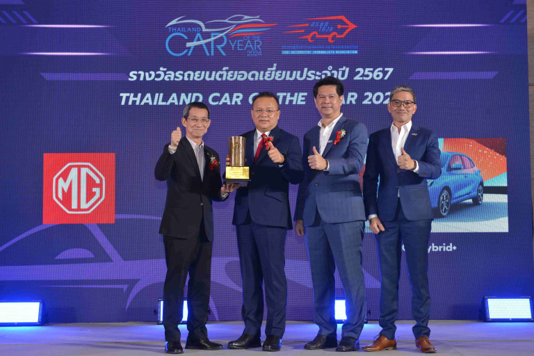 บริษัท เอสเอไอซี มอเตอร์ – ซีพี จำกัด และ บริษัท เอ็มจี เซลส์ (ประเทศไทย) จำกัด ผู้ผลิตและผู้จำหน่ายรถยนต์เอ็มจีในประเทศไทย เป็นปลื้มหลัง ALL NEW MG3 HYBRID+ คว้ารางวัลอันทรงเกียรติ THAILAND CAR OF THE YEAR 2024 ซึ่งจัดขึ้นโดยสมาคมผู้สื่อข่าวรถยนต์และรถจักรยานยนต์ไทย (สรยท.) ด้วยผลคะแนนโหวตจากสื่อมวลชนผู้ทรงคุณวุฒิ และมากประสบการณ์ในสายยานยนต์ และนับเป็นการรับรางวัล THAILAND CAR OF THE YEAR ต่อเนื่องเป็นปีที่ 2 สะท้อนให้เห็นถึงความสำเร็จในการพัฒนายานยนต์ที่จะเข้ามายกระดับอุตสาหกรรมยานยนต์ไทย ให้ก้าวไปสู่สังคมยานยนต์พลังงานทางเลือก ที่สามารถตอบโจทย์การใช้งานของผู้บริโภคคนไทยได้เป็นอย่างดี