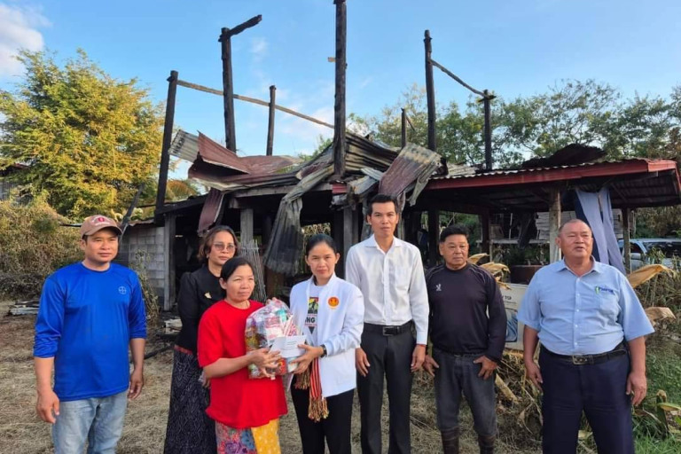 เพื่อเยี่ยมและสอบถามความเป็นอยู่ พร้อมให้กำลังใจและมอบสิ่งของเพื่อเป็นขวัญกำลังใจแก่ครอบครัวผู้ประสบอัคคีภัยใน โดยมีรองนายกองค์การบริหารส่วนตำบลหนองเรือให้การต้อนรับพร้อมร่วมเยี่ยมให้กำลังใจครอบครัวดังกล่าวด้วย