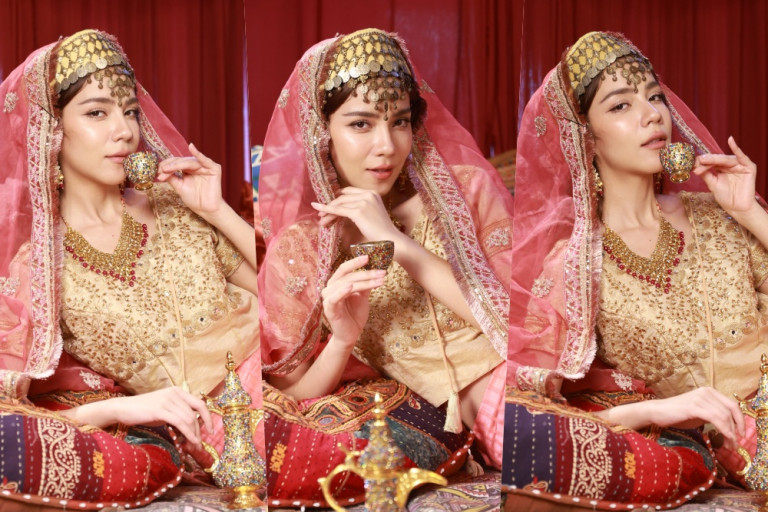 งานนี้บอกเลยว่า สวยคมแพงมาก ถึงขนาด "บุ๋ม"กุลชลี ปรีชญาดีกุล เจ้าของร้านถึงกับออกปากว่า สวยจึ้งแบบสาวตุรกีจริงๆ เมื่อแต่งองค์ทรงเครื่องเป็นสาวอาหรับสุดแซ่บแล้ว สาวจีน่า ก็เต็มที่ถ่ายรูป เช็คอินทุกมุมของคาเฟ่ อัปไอจี ติ๊กต๊อกฉ่ำๆ ประหนึ่งอยู่ที่ประเทศตุรกี (ทูร์เคีย) ยังไงอย่างนั้น ก่อนที่ นั่งจิบ กาแฟต้มทรายร้อน ตามแบบฉบับดั้งเดิมตุรกีแท้ ดื่มด่ำเช็ต ชาผลไม้หอม อาทิ ชาทับทิม, ชาแอปเปิ้ล และ ขนมหวานตุรกี “เตอร์กิช ดีไลท์” (Turkish Delight) ที่ส่งตรงจากตุรกีแบบจัดเต็ม บอกได้คำเดียวว่าเต็ม 10 ไม่หัก คาเฟ่ตุรกี บริเวณชั้น 2 ที่ร้านยำคุณแม่ คาเฟ่ (ตลิ่งชัน) ได้ทั้งดื่มด่ำความอร่อย และได้แปลงกายเป็นสาวตุรกีถ่ายรูปสวยๆ อย่างจุใจ ถูกจริต “สาวจีน่า เดอะเฟซ” อย่างแรง