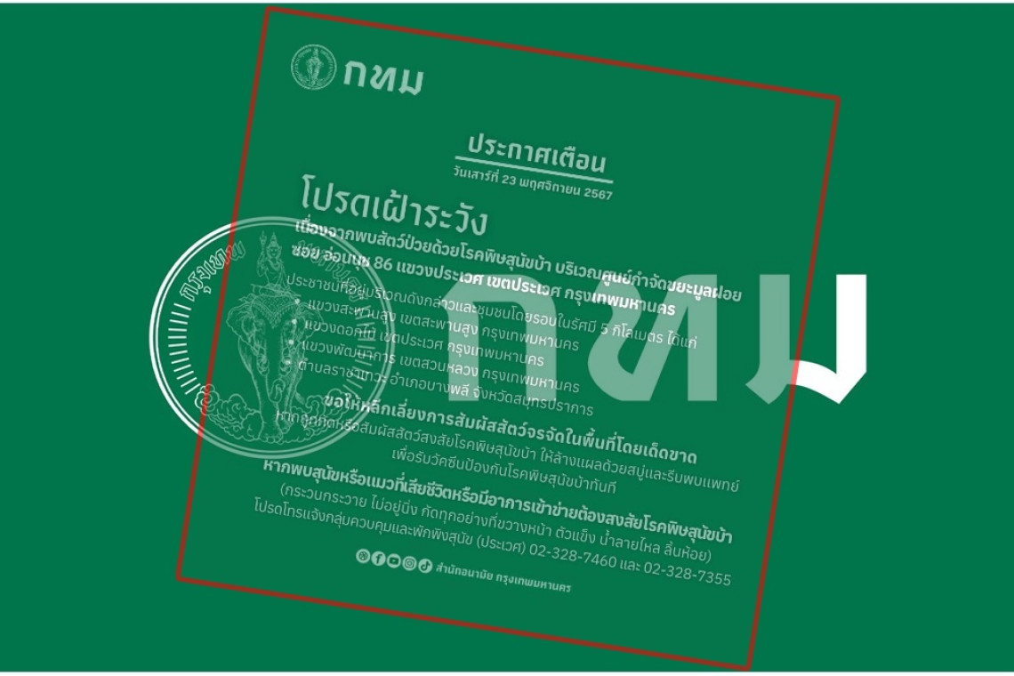 ขอให้หลีกเลี่ยงการสัมผัสสัตว์จรจัดในพื้นที่โดยเด็ดขาด