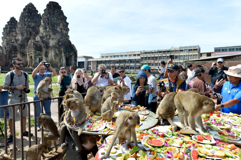 วันอาทิตย์ที่ 24 พ.ย.2567 สมาคมท่องเที่ยวจังหวัดลพบุรี จัดงานเลี้ยงโต๊ะจีนลิง ครั้งที่ 36 ประจำปี 2567 ในปีนี้ เป็นการเลี้ยงแบบบุฟเฟต์เพื่อที่บรรดาลิงจะได้มีอาหารกินอย่างเพียงพอ โดยเมนูอาหารมีให้ลิงเลือกกินแบบจุใจถึง 10 เมนู