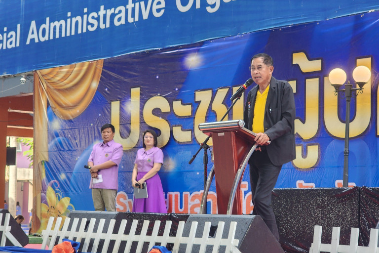 พลตำรวจโทคำรณวิทย์ ธูปกระจ่าง นายก อบจ.ปทุมธานี กล่าวว่า ขอชื่นชมการแสดงของนักเรียนที่สาร้งชื่อเสียงให้กับจังหวัดปทุมในระดับประเทศ ชื่นชมที่มีครูที่มีความสามารถในกรณีที่ครูที่ยังไม่ได้บรรจุเมื่อเขามีผลงานการแสดงการแข่งขันของนักเรียน ก็ต้องรีบทำเรื่องบรรจุให้ครูเพื่อขวัญกำลังใจของคณะครู ในฐานะที่ผมเป็นลูกครู พ่อผมครูแม่ผมครู โตมาในครอบครัวของครู ให้เราไม่ทุจริตคอร์รัปชันไม่เย่อหยิ่ง ท่านเป็นต้นแบบมา ทำให้ผมมีวันนี้ พ่อแม่สอนผมเสมอว่ายศฐาบรรดาศักดิ์มันคือหัวโขน ในส่วนของโรงเรียนผมได้ให้ความสำคัญกับโรงเรียนของให้ผู้ปกครองทุกท่านสบายใจได้ เราพยายามที่จะทำทุกอย่างที่จะพัฒนา เพื่อให้ลูกหลานของเราไปสู้กับเขาได้ ผมเองจะไม่เข้ามายุ่งในการบริหารในโรงเรียน ถ้าไปวุ่นวายจะไม่มีอิสระในการทำงาน ที่ผ่านมาผมไม่เข้ามาวุนวายเพียงแต่จะมาพบท่านผู้ปกครองปีละครั้ง การบริหารให้ ผอ.ดำเนินการไปเลย ขาดเหลืออะไรประสานมา ลูกหลานเรา 2,700 ชีวิต ยังขาดครูที่บรรจุทำให้ อบจ.ต้องจ้างครูจ้างอีกปีละ 60 กว่าล้านบาท.