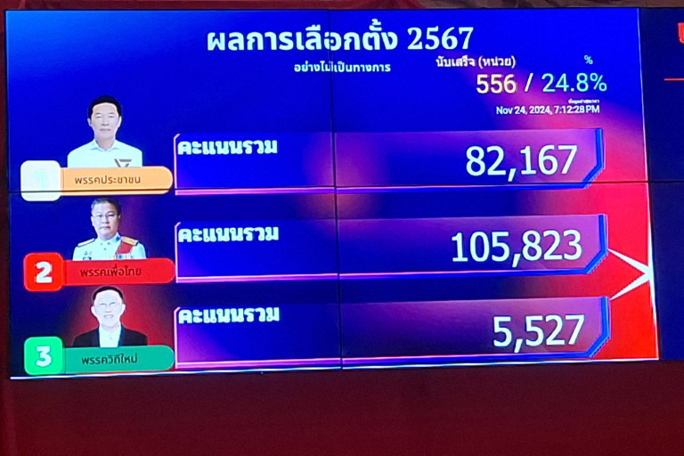 โดยขณะนี้คะแนนของนายศราวุธ เพชรพนมพร หมายเลข 2 ผู้สมัครจากพรรคเพื่อไทยมีคะแนน 170,000 กว่าคะแนน ส่วนนายคณิศร ที่ได้คะแนนประมาณ 130,000 กว่าคะแนน ซึ่งเป็นคะแนนอย่างไม่เป็นทางการ โดยคะแนนของนายศราวุธทิ้งห่างนายคณิสรอยู่ประมาณ 40,000 กว่าคะแนน