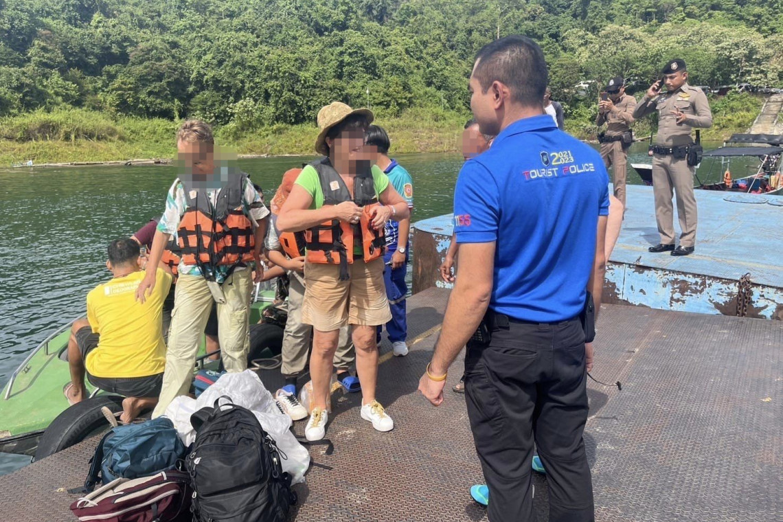 วันที่ 23 พ.ย.2567 เวลา ประมาณ 10.00 น.ได้รับแจ้งเบื้องต้น เรือนำเที่ยว หมายเลขเรือ ทท 032 จมน้ำ มีนักท่องเที่ยวภายในเรือจำนวน 12 คน ใกล้บริเวณเขาสามเกลอ ภายในเขื่อนรัชชประภา ต.เขาพัง อ.บ้านตาขุน จ.สุราษฎร์ธานี เบื้องต้นช่วยเหลือได้ 11คน ส่วนกระเป๋าถือตำรวจและทรัพย์สินสูญหาย พ.ต.ท. ภัทรินทร์ สุทธิภัทรธรรม สว.ส.ทท.4(สุราษฎร์ธานี)ฯ พร้อมชุดสายตรวจตำรวจท่องเที่ยวสุราษฎร์ธานี หน่วยเขื่อนรัชชประภา เดินทางไปยังสถานที่เกิดเหตุเพื่อตามหานักท่องเที่ยวที่จมน้ำ ได้นำเรือตรวจการณ์ ตำรวจท่องเที่ยว ออกไปช่วยเหลือนักท่องเที่ยว บริเวณเขาสามเกลอและกำลังอีกส่วนหนึงอยู่ที่ท่าเทียบเรือ โดย ตั้งศูนย์ช่วยเหลือนักท่องเที่ยว เพื่อประสานข้อมูล และ ช่วยเหลือนักท่องเที่ยว ส่วนนักท่องเที่ยวที่สูญหาย กำลังค้นหา ตำรวจท่องเที่ยว ตำรวจ สภ.บ้านตาขุน อุทยานแห่งชาติเขาสก เทศบาลเชี่ยวหลาน กรมเจ้าท่าสุราษฎร์ธานี ฝ่ายปกครอง มูลนิธิกู้ภัย และหน่วยงานที่เกี่ยวข้อง ได้จัดตั้งศูนย์เพื่อช่วยเหลือค้นหานักท่องเที่ยว ร่วมกับหน่วยงานที่เกี่ยวข้องที่ท่าเทียบเรือเขื่อนรัชชประภา ในวันนี้ได้มีรองผู้บังคับการตำรวจภูธรจังหวัดสุราษฎร์ธานี นายอำเภอบ้านตาขุนได้เข้ามาควบคุมการปฎิบัติ ประชุมวางแผน ในการค้นหา แต่เนื่องด้วยเป็นเวลาใกล้จะค่ำจึงยกเลิกการค้นหาในอ่างเก็บน้ำจะเริ่มค้นหาในวันพรุ่งนี้