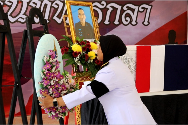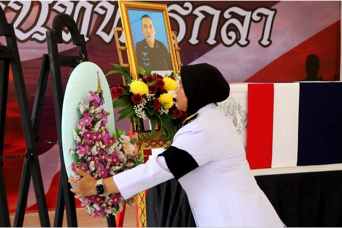 วันที่ 25 พฤศจิกายน 2567 เวลา 11.20 น. พระบาทสมเด็จพระเจ้าอยู่หัว ทรงพระกรุณาโปรดเกล้าโปรดกระหม่อมให้ นางพาตีเมาะ สะดียามู ผู้ว่าราชการจังหวัดปัตตานี เชิญพวงมาลาของพระบาทสมเด็จพระเจ้าอยู่หัว พวงมาลาของสมเด็จพระนางเจ้าสิริกิติ์ พระบรมราชินีนาถ พระบรมราชชนนีพันปีหลวง และพวงมาลาของสมเด็จ พระนางเจ้า ฯ พระบรมราชินี ไปวางที่หน้าหีบศพ อาสาสมัครทหารพราน เปลี่ยน ศิริสุข เจ้าหน้าที่ชุดปฏิบัติการจรยุทธ์ กองร้อยทหารพราน 4105 ซึ่งเสียชีวิตจากการปะทะในระหว่างปฏิบัติภารกิจในบริเวณพื้นที่บ้านคอลอบาแล ตำบลบาเจาะ อำเภอบันนังสตา จังหวัดยะลา เมื่อวันที่ 24 พฤศจิกายน 2567 โดยตั้งศพบำเพ็ญกุศล ณ วัดสุวรรณากร ตำบลบ่อทอง อำเภอหนองจิก จังหวัดปัตตานี