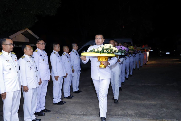 เมื่อวันที่ 25 พ.ย.67 เวลา 19.00 น. นายจำเริญ แหวนเพ็ชร รองผู้ว่าราชการจังหวัดบุรีรัมย์ เป็นประธานในพิธีเชิญพวงมาลาพระราชทาน พระบาทสมเด็จพระเจ้าอยู่หัว , สมเด็จพระนางเจ้า สิริกิติ์ พระบรมราชินีนาถ ในรัชกาลที่ 9 , สมเด็จพระกนิษฐาธิราชเจ้า กรมสมเด็จพระเทพรัตนราชสุดาฯ เจ้าฟ้ามหาจักรีสิรินธร มหาวชิราลงกรณวรราชภักดี สิริกิจการิณีพีรยพัฒน รัฐสีมาคุณากรปิยชาติ สยามบรมราชกุมารี , สมเด็จพระเจ้าน้องนางเธอ เจ้าฟ้าจุฬาภรณวลัยลักษณ์ อัครราชกุมารี กรมพระศรีสวางควัฒน วรขัตติยราชนารี , ทูลกระหม่อมหญิงอุบลรัตนราชกัญญา สิริวัฒนาพรรณวดี พระเจ้าวรวงศ์เธอ พระองค์เจ้าโสมสวลี กรมหมื่นสุทธนารีนารถ ,สมเด็จพระเจ้าลูกเธอ เจ้าฟ้าพัชรกิติยาภา นเรสทิราเทพยวดี กรมหลวงราชสาริณีสิริพัชร มหาวัชรราชธิดา , สมเด็จพระเจ้าลูกเธอ เจ้าฟ้าสิริวัณรวรี นารีรัตน์ราชกัญญา ,สมเด็จพระเจ้าลูกยาเธอ เจ้าฟ้าทีปังกรรัศมีโชติ มหาวชิโรตตมางกูร สิริวิบูลยราชกุมาร , พระเจ้าวรวงศ์เธอ พระองค์เจ้าสิริภาจุฑาภรณ์ และพระเจ้าวรวงศ์เธอ พระองค์เจ้าอทิตยาทรกิติคุณ รวม 12 พระองค์ วางหน้าหีบศพ อาสาสมัคร ทหารพราน เปลี่ยน ศิริสุข อายุ 44 ปี เจ้าหน้าที่ทหารพรานชุดปฏิบัติการจรยุทธ์ ( ชป.จรยุทธ์) ของ ร้อย.ทพ.4105 ที่เสียชีวิตจากเหตุการณ์ถูกกลุ่มคนร้ายไม่ทราบกลุ่มและจำนวน ใช้อาวุธปืนสงครามดักซุ่มโจมตียิงเข้าใส่ และเกิดการปะทะกัน ขณะออกปฏิบัติหน้าที่จรยุทธ์ตามแผนยุทธการ เหตุเกิดที่บริเวณริมถนนสายบ้านคอลอกาเอ-เขื่อนบางลาง หมู่ที่ 5 ต.บาเจาะ อ.บันนังสตา จ.ยะลา เมื่อเวลา 11.35 น. วันที่ 24 พ.ย.ที่ผ่านมา โดยตั้งศพบำเพ็ญกุศล ณ ศาลาวัดบ้านราษฎร์รักแดน ต.หนองแวง อ.ละหานทราย จ.บุรีรัมย์