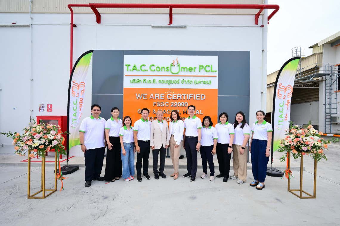 พล.ร.อ.อภิชาติ เพ็งศรีทอง ประธานกรรมการ พร้อมคณะกรรมการบริษัทและคุณภาวินี สุวรรณเมธานนท์ กรรมการผู้จัดการ บริษัท ที.เอ.ซี. คอนซูเมอร์ จำกัด (มหาชน) (TACC) ถ่ายภาพร่วมกัน เนื่องในโอกาสเปิดโรงงานที่ 3 ซึ่งจะช่วยเพิ่มศักยภาพในการผลิตให้เกิดประสิทธิภาพสูงสุด รองรับการขยายตัวทางธุรกิจทั้งในกลุ่ม B2B และ กลุ่ม B2C ในอนาคต เพิ่มกำลังการผลิตจากเดิมได้ถึง 30%ถือเป็นการเดินทางเข้าสู่ทศวรรษที่ 3 อย่างแข็งแกร่ง โดยมีเป้าหมายในการดำเนินธุรกิจที่ชัดเจน มีพัฒนาการทางธุรกิจและผลการดำเนินงานที่เติบโตอย่างต่อเนื่อง สะท้อนได้จากความมุ่งมั่นของทีมผู้บริหารและพนักงานทุกคน ซึ่งกิจกรรมดังกล่าวจัดขึ้น ณ โรงงาน อำเภอบ้านบึง จังหวัดชลบุรี