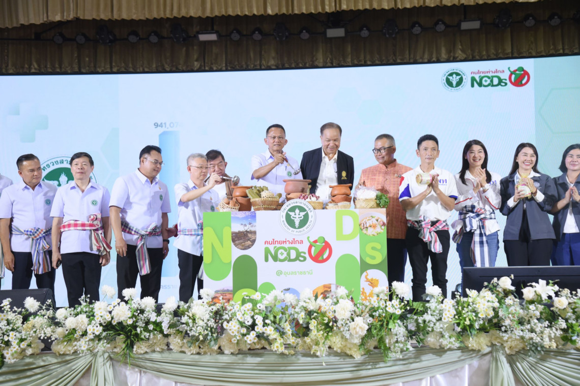 วันที่ 26 พ.ย.2567 ที่อุบลราชธานี นายสมศักดิ์ เทพสุทิน รัฐมนตรีว่าการกระทรวงสาธารณสุข เป็นประธานพิธีเปิดงานการขับเคลื่อนนโยบายคนไทยห่างไกลโรคไม่ติดต่อเรื้อรัง (NCDs) ครั้งที่ 5 ในเขตสุขภาพที่ 10 อุบลราชธานี ประกอบด้วย 5 จังหวัด ได้แก่อุบลราชธานี มุกดาหาร อำนาจเจริญ ศรีสะเกษ และยโสธร โดยมีนายสมคิด เชื้อคง รองเลขาธิการนายรัฐมนตรี ฝ่ายการเมือง นพ.โอภาส การย์กวินพงศ์ ปลัดกระทรวงสาธารณสุข ว่าที่พันตรีอดิศักดิ์ น้อยสุวรรณ ผู้ว่าราชการจังหวัดอุบลราชธานี นพ.ภูวเดช สุระโคตร นพ.มณเฑียร คณาสวัสดิ์ รองปลัดกระทรวง สาธารณสุข ภก.วีระชัย นลวชัย รักษาการผู้ตรวจราชการกระทรวงสาธารณสุขเขตสุขภาพที่ 10 น.ส.ตรีชฎา ศรีธาดา โฆษกกระทรวงสาธารณสุข ฝ่ายการเมือง นายโฆษิต สุวินิจจิต นายเอกฤทธิ์ ศาตะมาน คณะที่ปรึกษารัฐมนตรีว่าการกระทรวงสาธารณสุข คณะผู้บริการกระทรวง พร้อมด้วย สส.พรรคเพื่อไทย นำโดย นายวรสิทธิ์ กัลป์ตินันท์ สส.เขต 1 น.ส.กิตติ์ธัญญา วาจาดี สส.อุบลราชธานี เขต 4 น.ส.ธัญธารีย์ สันตพันธุ์ สส.อุบลราชธานี เขต 6 น.ส.สุดารัตน์ พิทักษ์พรพันลภ สส.อุบลราชธานี เขต 7 นายชูวิทย์ พิทักษ์พรพันลภ อดีตสส.เพื่อไทย อสม.เขตสุขภาพที่ 9 และ 10 เข้าร่วมงานประมาณ 4,000 คน และเข้าร่วมผ่านระบบออนไลน์อีกจำนวน 200,000 คน