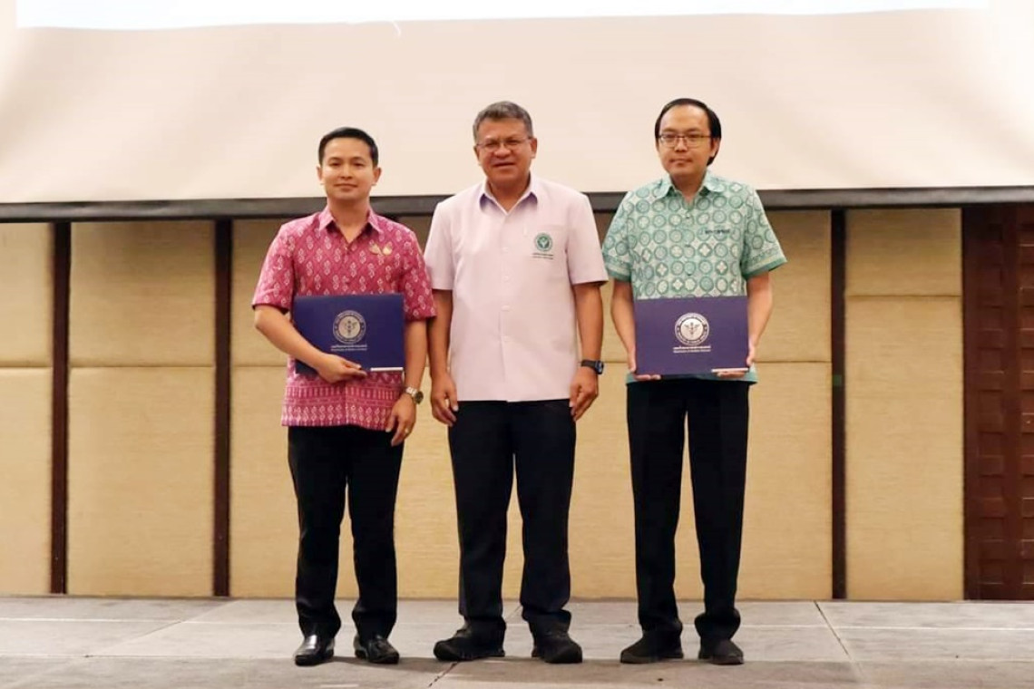 วันที่ 26 พ.ย.67 ที่ โรงแรมไมด้า รีสอร์ท อำเภอเมือง จังหวัดกาญจนบุรี น.พ.ธีรพจน์ ฟักน้อย นายแพทย์สาธารณสุขจังหวัดกาญจนบุรี รับมอบใบประกาศเกียรติคุณผู้บริหารการขับเคลื่อนงานวิทยาศาสตร์การแพทย์ชุมชนระดับพื้นที่สู่ความสำเร็จ จากนายยงยศ ธรรมวุฒิ อธิบดีกรมวิทยาศาสตร์การแพทย์ พร้อมทั้ง นายแพทย์กฤษดา วุธยากร นายแพทย์เชี่ยวชาญ ด้านเวชกรรมป้องกัน รักษาการในตำแหน่งผู้อำนวยการโรงพยาบาลสังขละบุรี ผู้อำนวยการโรงพยาบาล และเจ้าหน้าที่ของหน่วยงานในสังกัดเข้าร่วมรับมอบใบประกาศเกียรติคุณด้วย