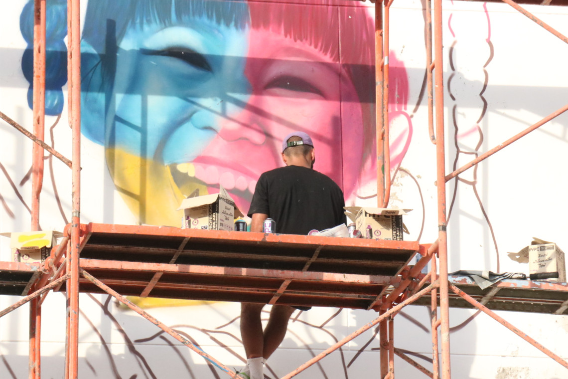โดยมี ว่าที่ร้อยตรีอธิปัตย์ ทองชั้น ประธานสโมสรบีบอยโคราช ผู้จัดการ K-BATTLE รายงานความคืบหน้า และนำคณะชมรูปภาพศิลปะที่ศิลปินกราฟฟิตี้กำลังดำเนินการสร้างสรรค์ผลงานบริเวณผนังอาคารสูง 3 ชั้น เป็นภาพ “ เด็กหญิง พันผ้าพันแผลอุ้มน้องแมวด้วยรอยยิ้มอันเบิกบาน” สร้างความประทับใจ และจรรโลงใจให้กับผู้สัญจรผ่านไปมา บริเวณสถานพยาบาล