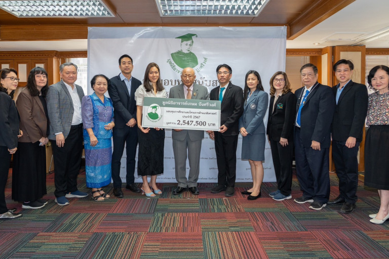 คุณธีระพงศ์ ปังศรีวงศ์ กล่าวย้ำถึงเจตนารมณ์ของมูลนิธิฯ ที่ยังคงมุ่งมั่นในการสร้างรากฐานอันแข็งแกร่งให้แก่แวดวงเภสัชศาสตร์ของประเทศไทย “หนึ่งในภารกิจที่มูลนิธิฯ ให้ความสำคัญเป็นอย่างยิ่งคือ การส่งเสริมการพัฒนาองค์ความรู้และนวัตกรรมทางการแพทย์ที่สามารถนำไปสู่การพัฒนาคุณภาพชีวิตของผู้คนในสังคม โดยเฉพาะในยุคที่การเปลี่ยนแปลงทางเทคโนโลยีและวิทยาศาสตร์มีความก้าวหน้าอย่างรวดเร็ว เราต้องการให้ผู้ที่กำลังศึกษาในสาขาเภสัชศาสตร์ในประเทศไทยสามารถเข้าถึงโอกาสทางการเรียนรู้และวิจัยค้นคว้าทางวิทยาศาสตร์ที่ทันสมัย เพื่อสามารถนำองค์ความรู้เหล่านั้นไปใช้ประโยชน์ในด้านการดูแลสุขภาพและการพัฒนายาที่จะช่วยรักษาผู้ป่วยและเพิ่มคุณภาพชีวิตให้กับสังคม ผมหวังว่าทุนสนับสนุนในด้านต่าง ๆ ที่มูลนิธิฯ ได้มอบให้ในแต่ละปีนั้นจะเป็นแรงผลักดันให้เกิดการเรียนรู้ การเข้าถึงทรัพยากร และการสนับสนุนที่จำเป็นในการดำเนินการวิจัยที่สำคัญ ซึ่งไม่เพียงแค่จะช่วยให้เกิดการค้นพบใหม่ ๆ ในการรักษาผู้ป่วย แต่ยังสามารถนำไปสู่การพัฒนานวัตกรรมที่มีประโยชน์อย่างยั่งยืนในอนาคต และจะช่วยยกระดับมาตรฐานการดูแลสุขภาพของประชาชนในประเทศไทยต่อไป”